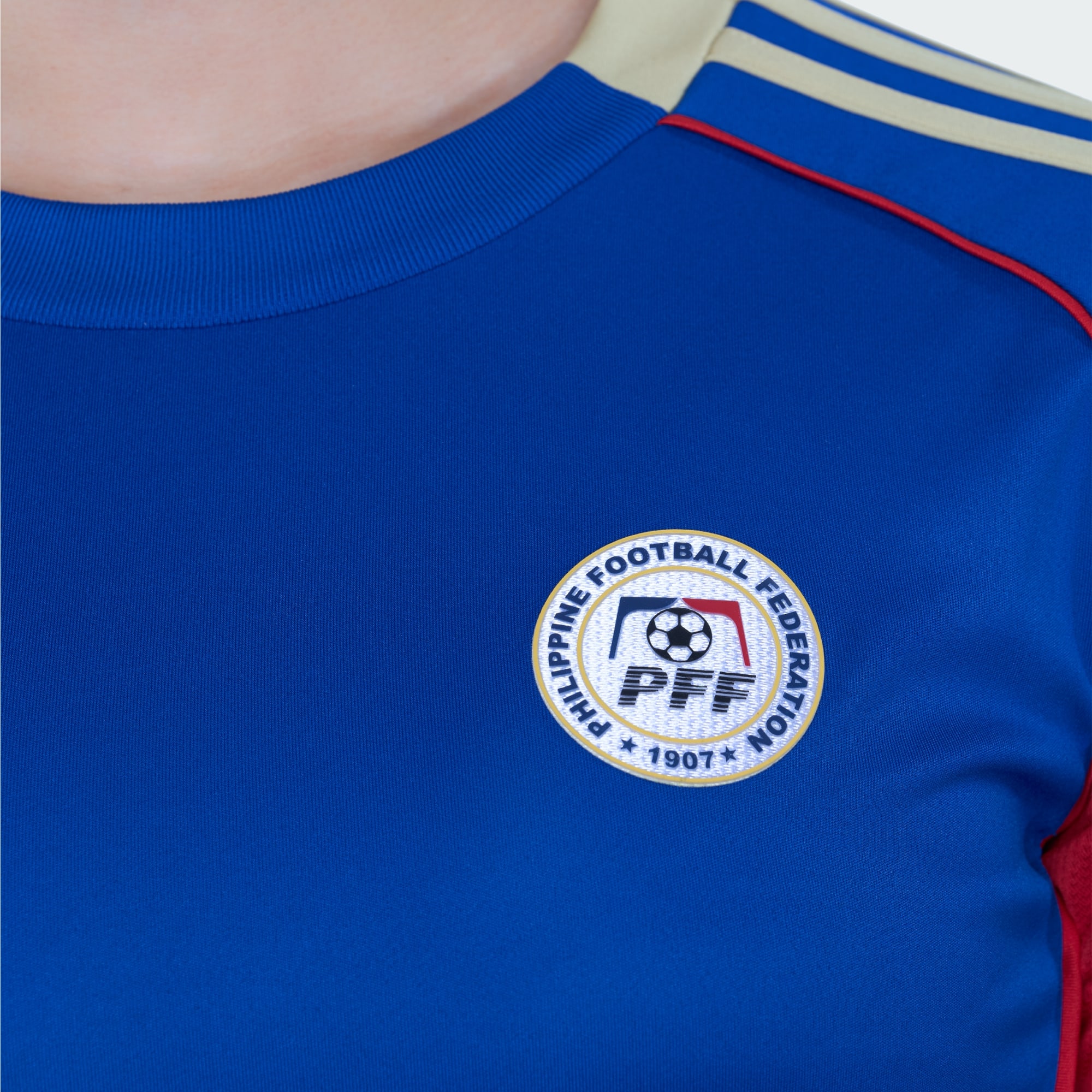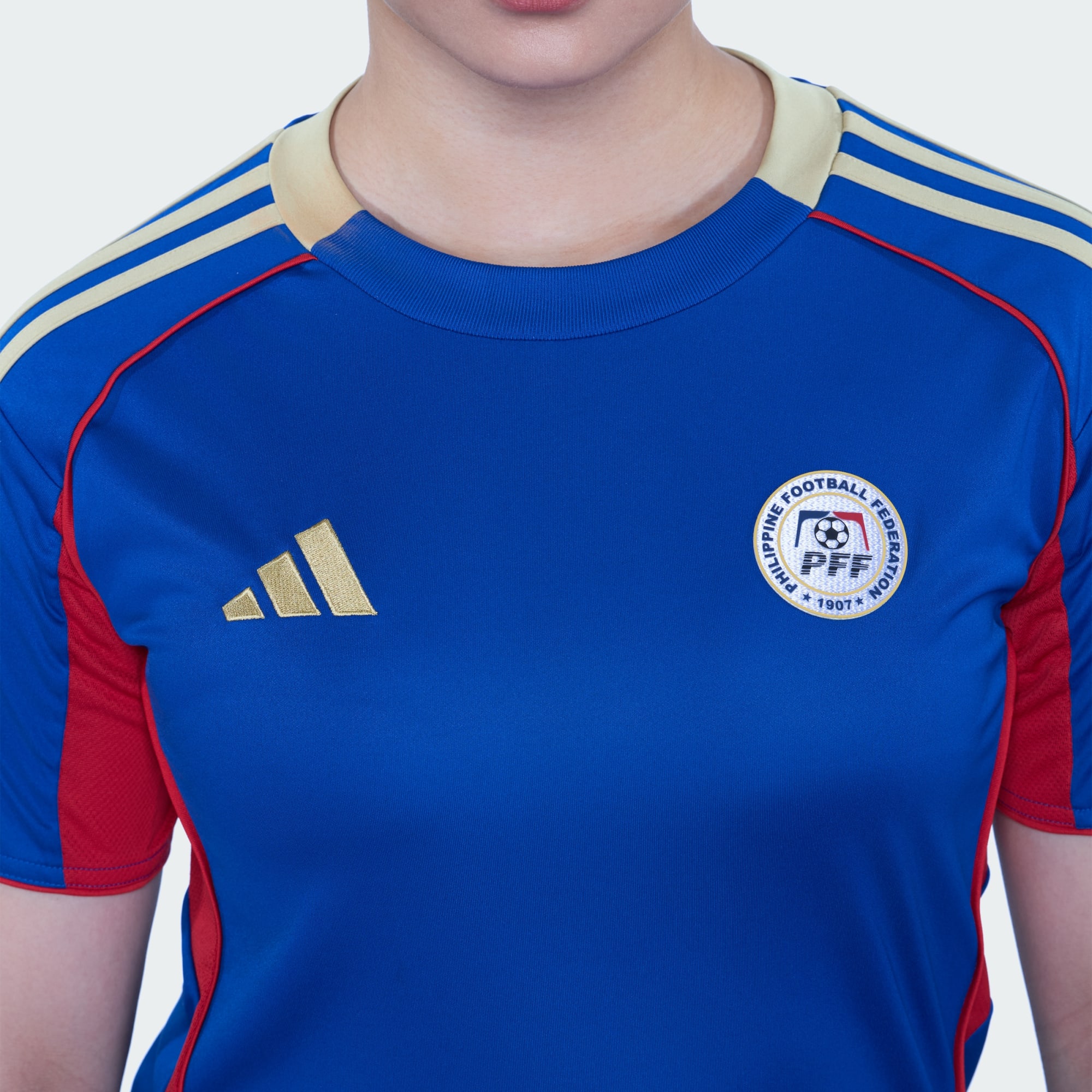 Built for Bravery. The official adidas Filipinas licensed home jersey celebrates the strength and spirit of the Philippines' national women's football team. Designed in royal blue with bold red accents and subtle gold detailing, this kit features gold three stripes on the shoulders and red piping on the sleeves — a nod to national pride. Crafted with the same lightweight, moisture-wicking AEROREADY technology worn by top clubs in the 2025/26 season, this jersey keeps you dry and focused, whether you're on the pitch or in the stands. Made from 100% recycled polyester. A portion of the proceeds will support the programs of the Philippine Football Federation (PFF), helping grow the future of football in the country.