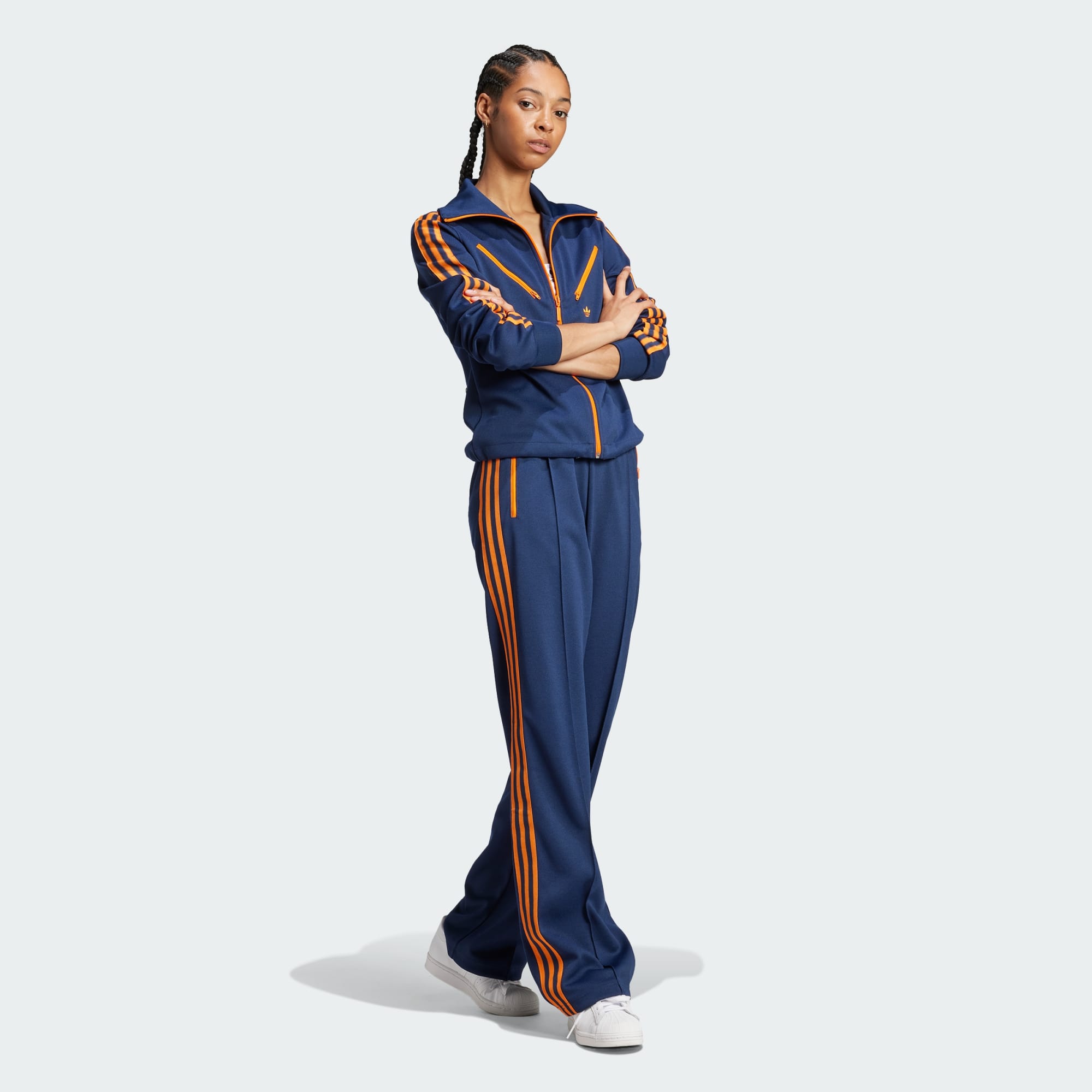 "This season of Adicolor 70s collection revisits archival looks through an ultra-modern, all gender lens. Undeniably adidas, the collection is a lesson in contrasts — bright tones collide with pastel hues while a playful mix of luxurious materials gives the 70s-inspired silhouettes an energetic new form." — Originals Designers, Lena Sophie Anders & Christina Witte Iconic then. Iconic now. The Adicolor 70s Montreal Track Pants are a modern take on adidas' Montreal Olympics tracksuit. The archival 3-Stripes gliding down the legs and zip pockets are a nod to the past, while the bold colorway and embroidered Trefoil logo keep things undeniably fresh. Add definition to the fit with a drawstring waist.