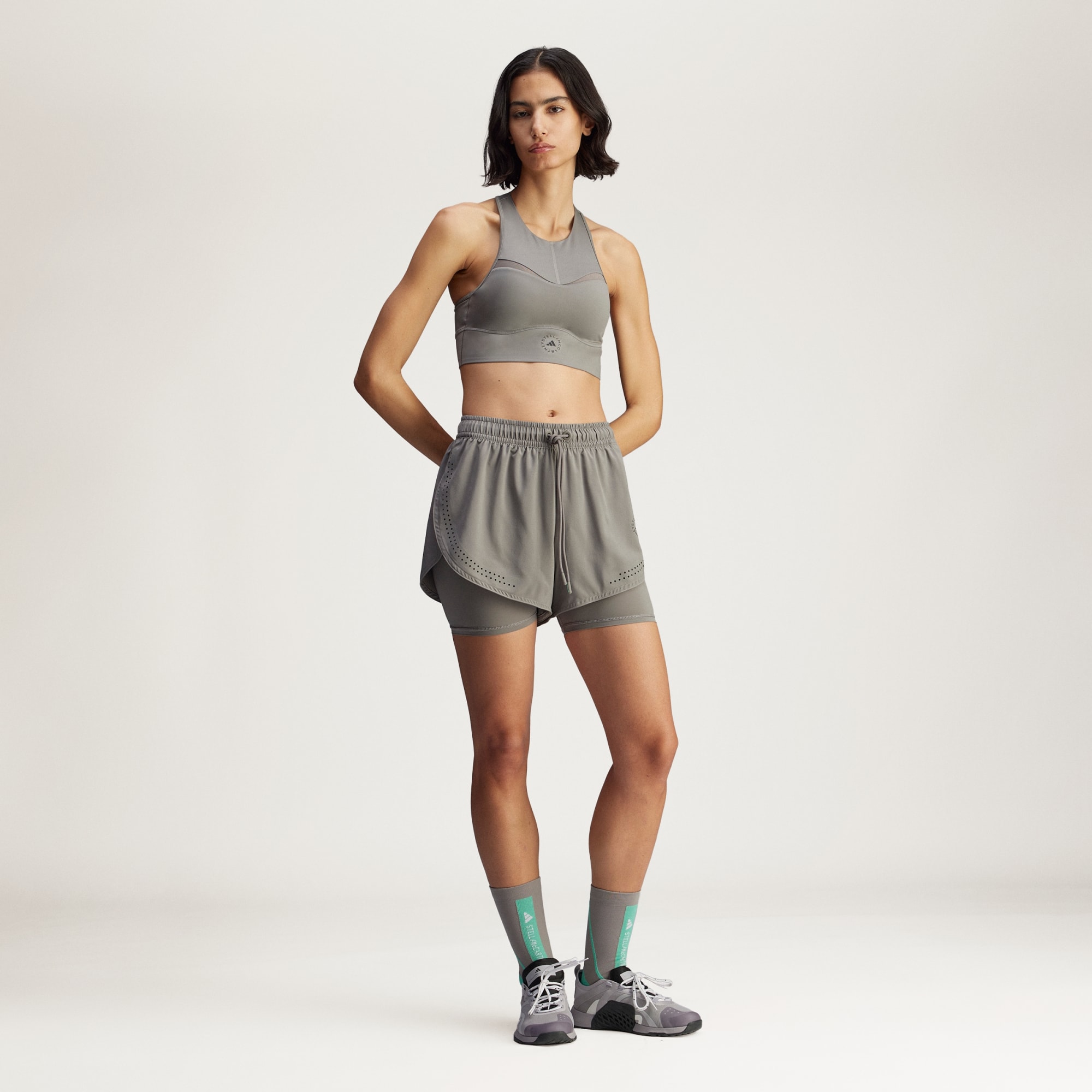 Get the coverage you want with the comfort you need in these adidas by Stella McCartney training shorts. A tight-fit pair sits beneath a looser pair to keep you feeling confident, no matter which workout you're taking on today. The high-rise waist is supportive and comfortable, and HEAT.RDY technology keeps you cool when things heat up. Laser-cut perforations and translucent mesh panels help circulate the air. You've got this.This product is made with at least 70% recycled materials. By reusing materials that have already been created, we help to reduce waste and our reliance on finite resources and reduce the footprint of the products we make.