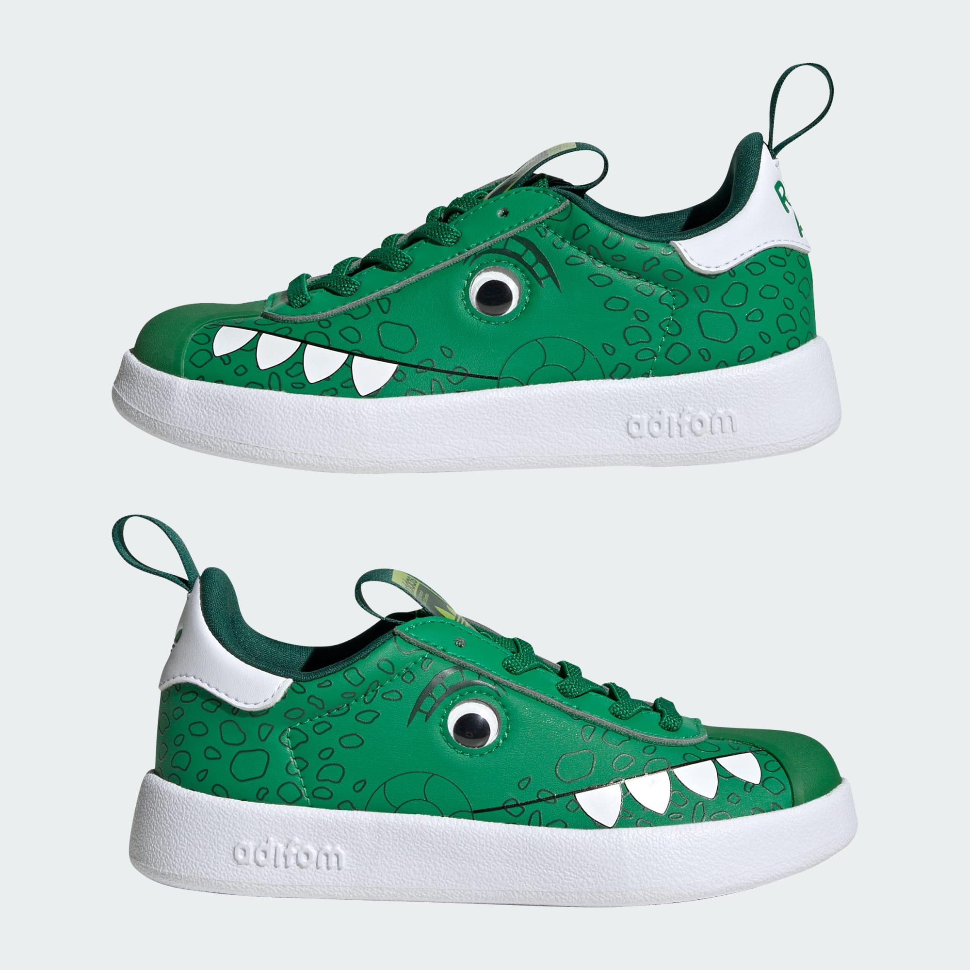 Toys rule. These kids' adidas shoes pay homage to Rex, the friendly dinosaur from Disney Pixar's "Toy Story." The breathable mesh upper feels super lightweight, so their feet stay comfortable on the move.