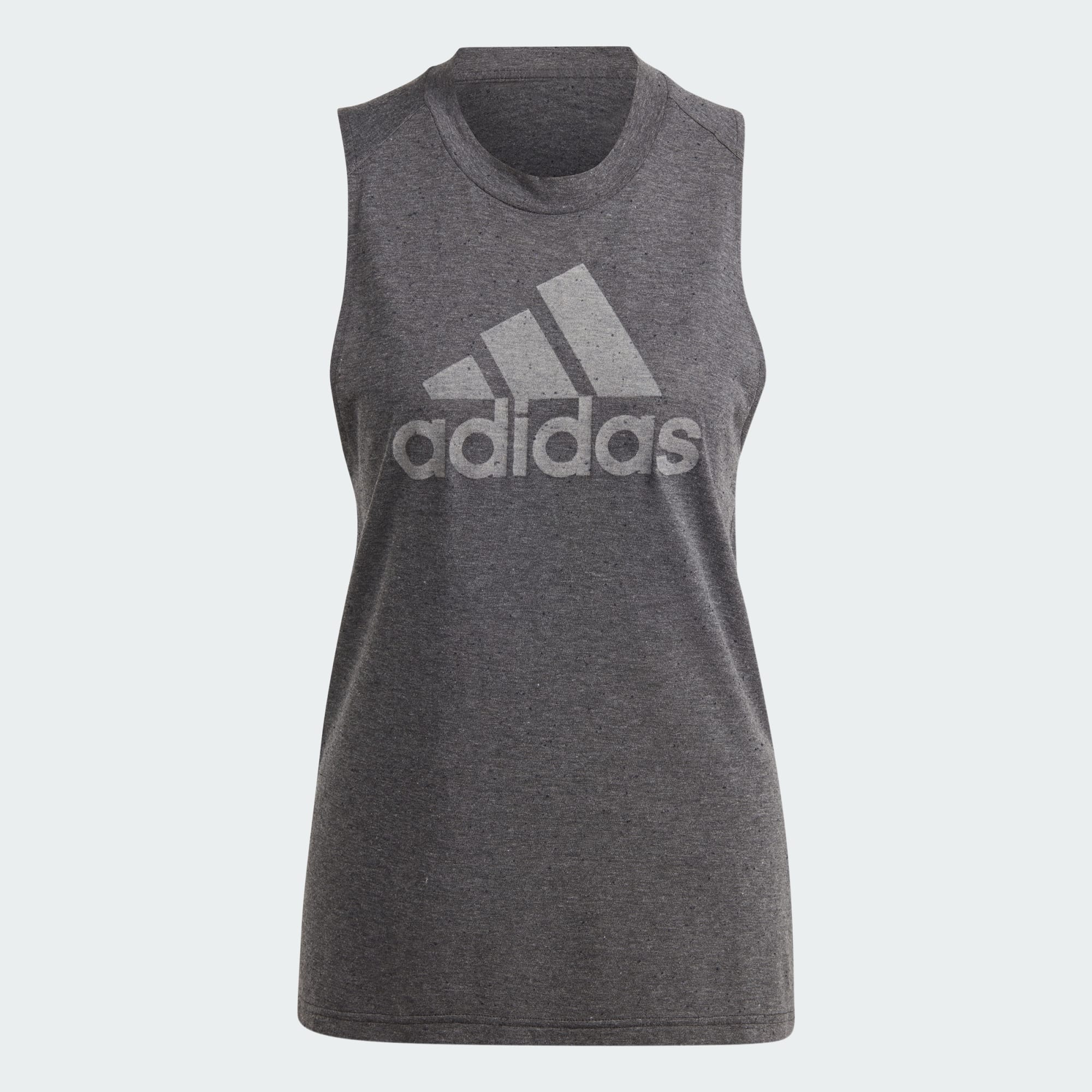 Something you can move in. Something you can relax in. This adidas tank top lets you do it all. No compromises. Just balance. Super-soft material puts comfort at the forefront. Let it hang loosely or tuck it in — the droptail hem falls longer in the back to give it that final touch of ease. The mélange look adds subtle visual texture, though the large contrast logo graphic goes the opposite direction of subtlety, and flirts with the extreme.