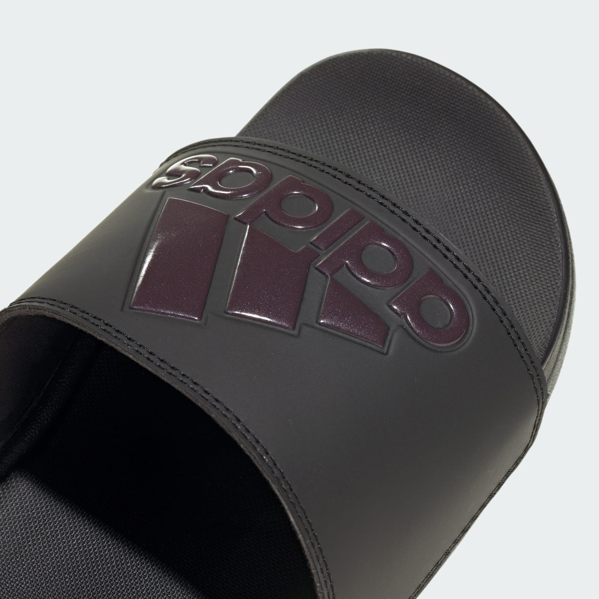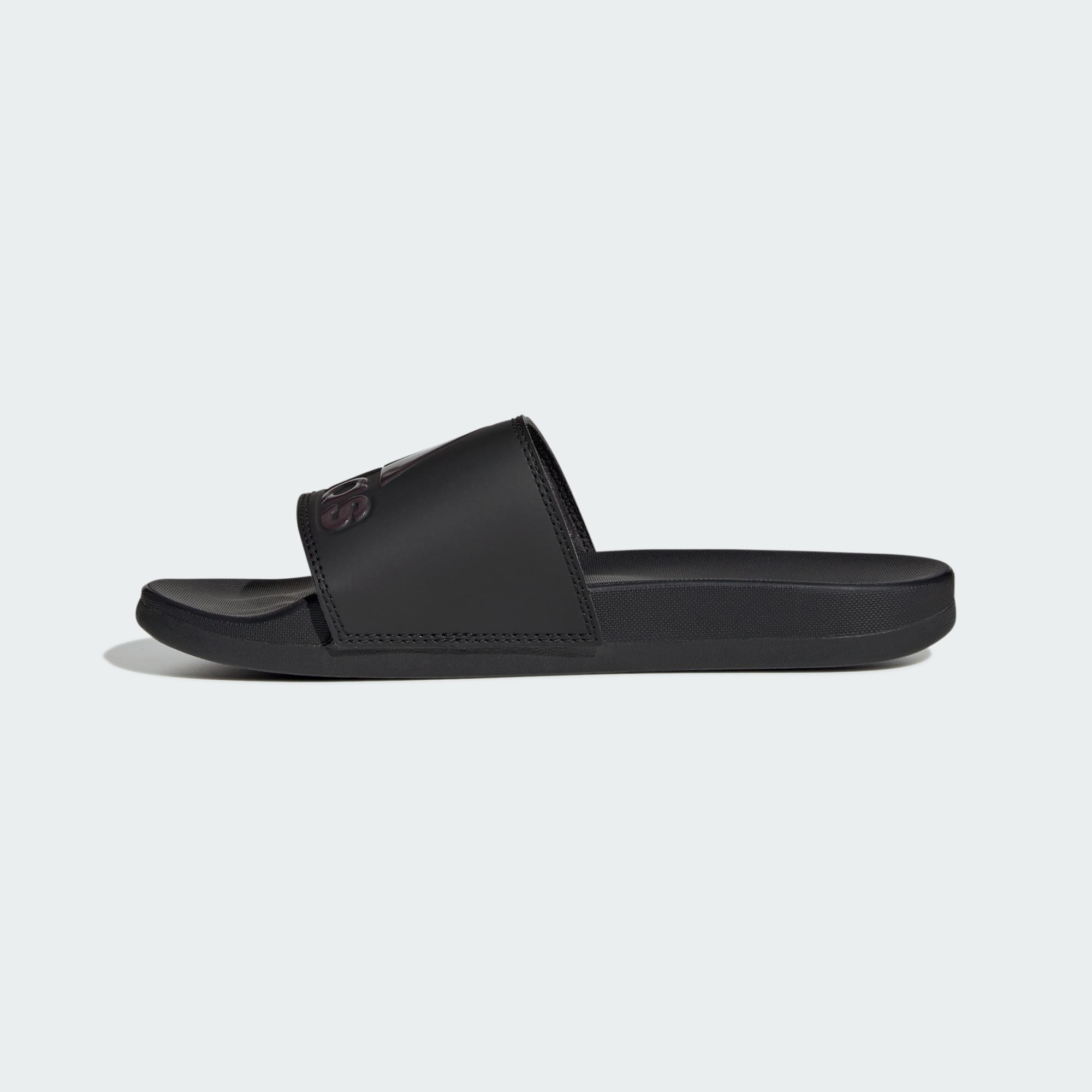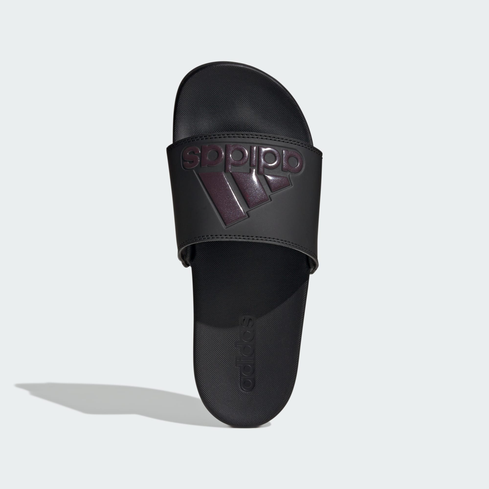 Classic slip-on slides with bold adidas branding.