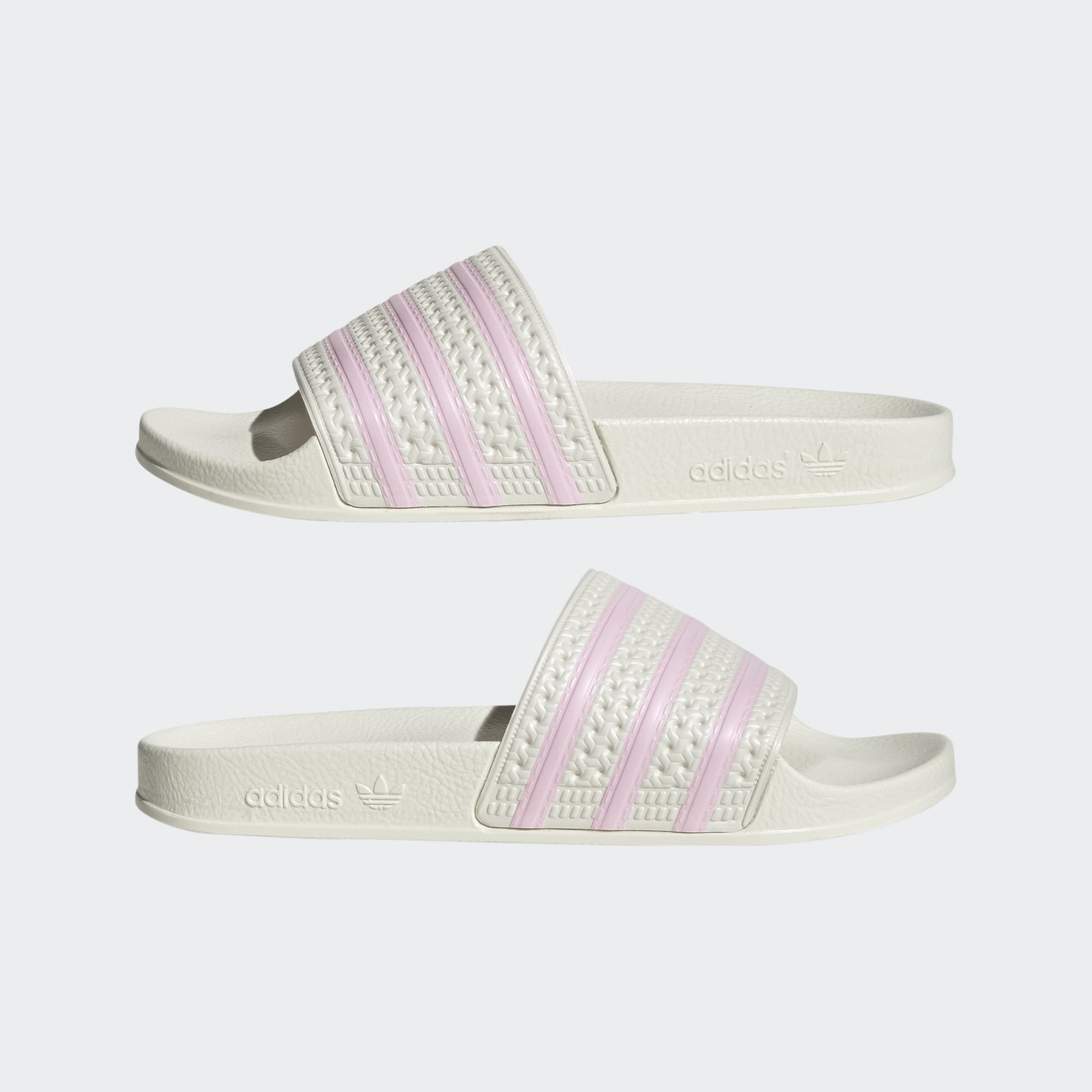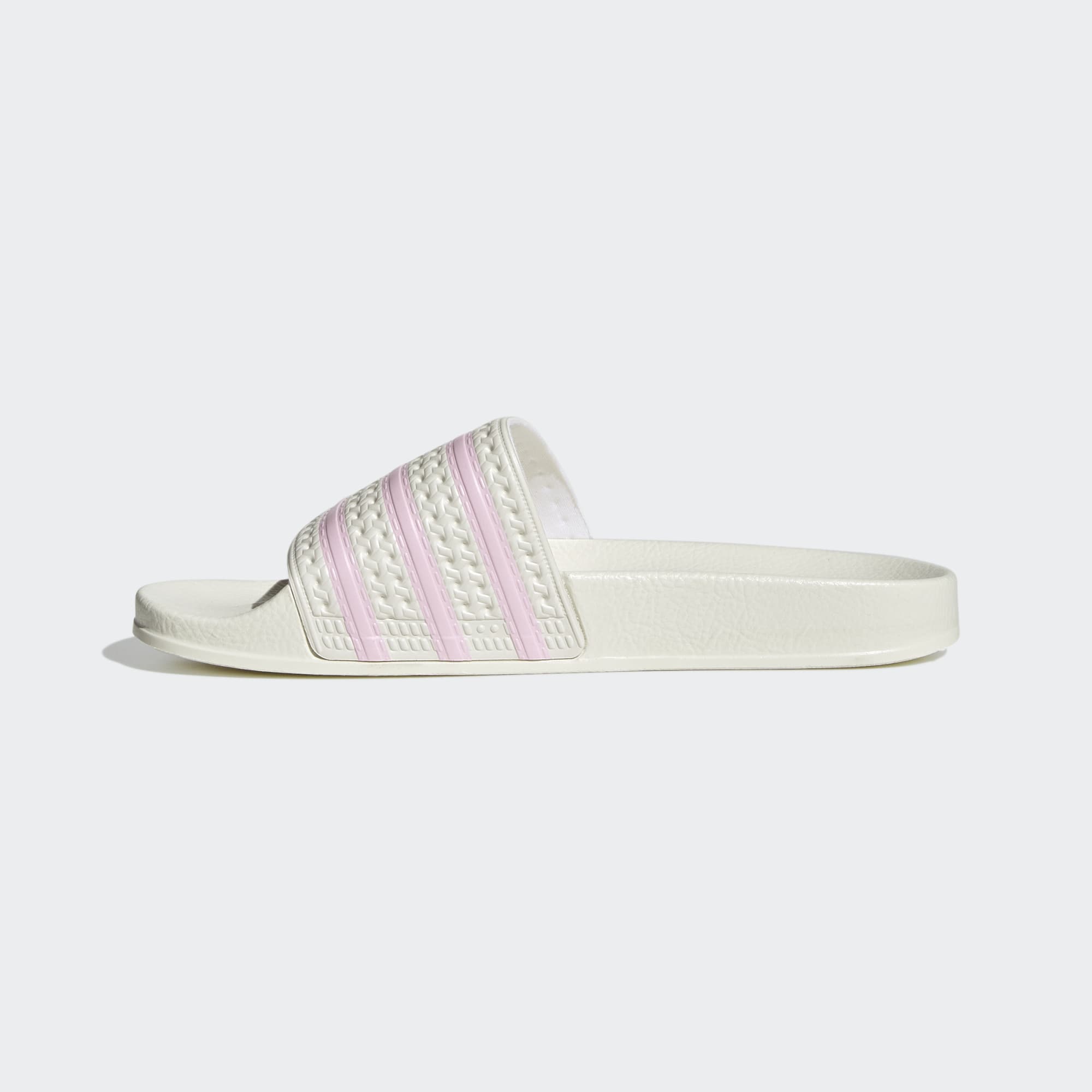 A fresh spin on the iconic OG design. Known and loved for their comfortable build, these adidas Adilette Slides feature a classic contoured footbed perfect for casual everyday wear. A textured bandage upper with contrasting 3-Stripes brings a playful energy to the style. Slide them on with track pants or a shirt dress for elevated appeal.