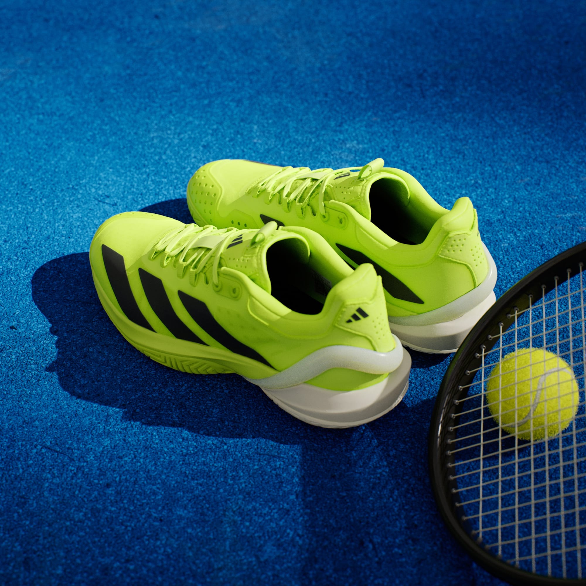 Take your pace into a new dimension. These adidas Adizero Cybersonic tennis shoes team a lightweight mesh upper with ENERGYRODS designed to limit energy loss at toe off. Sitting on an Adiwear outsole created for hard court stability, a Lightstrike midsole keeps you close to the ground so you can instantly respond to every challenge. This product features at least 20% recycled materials. By reusing materials that have already been created, we help to reduce waste and our reliance on finite resources and reduce the footprint of the products we make.