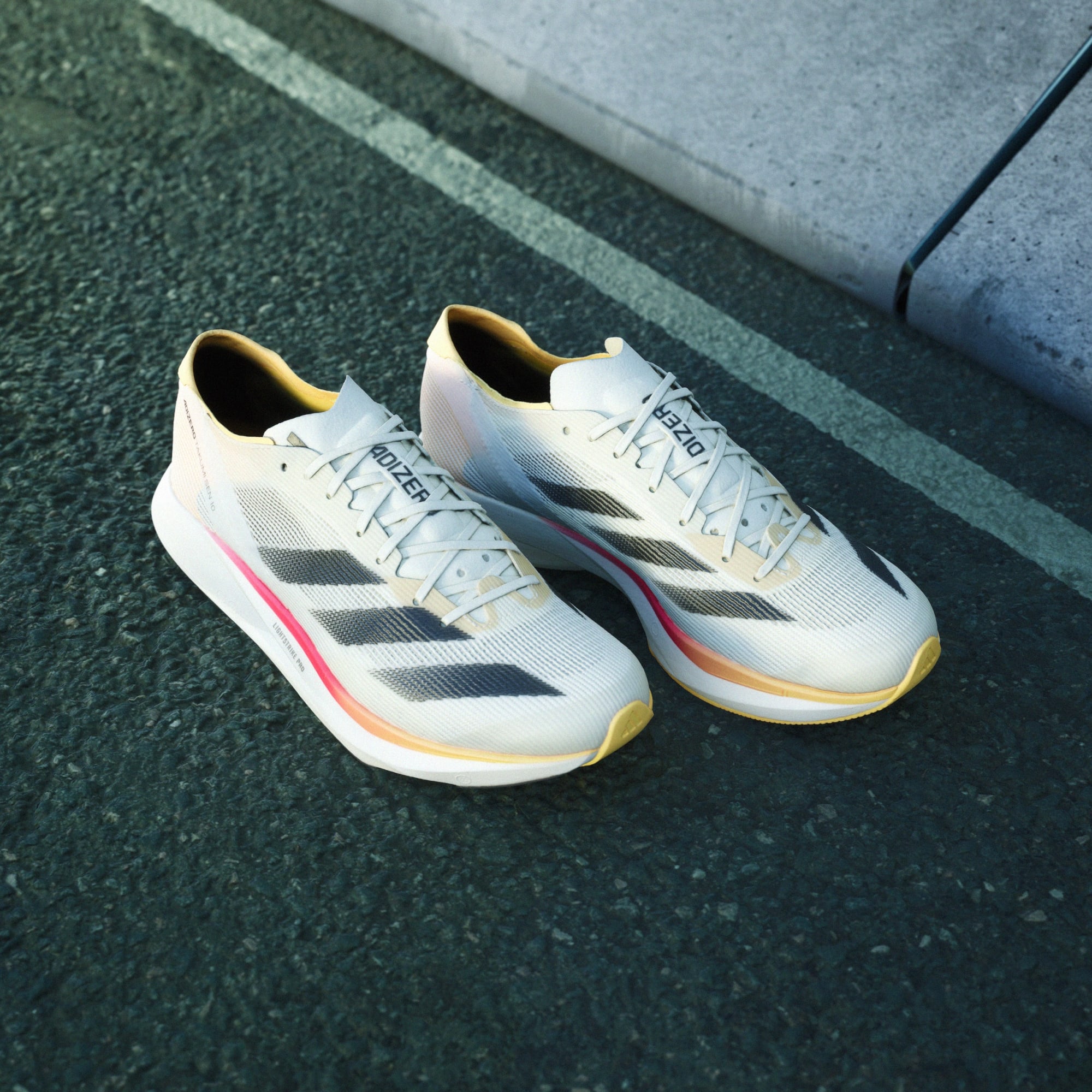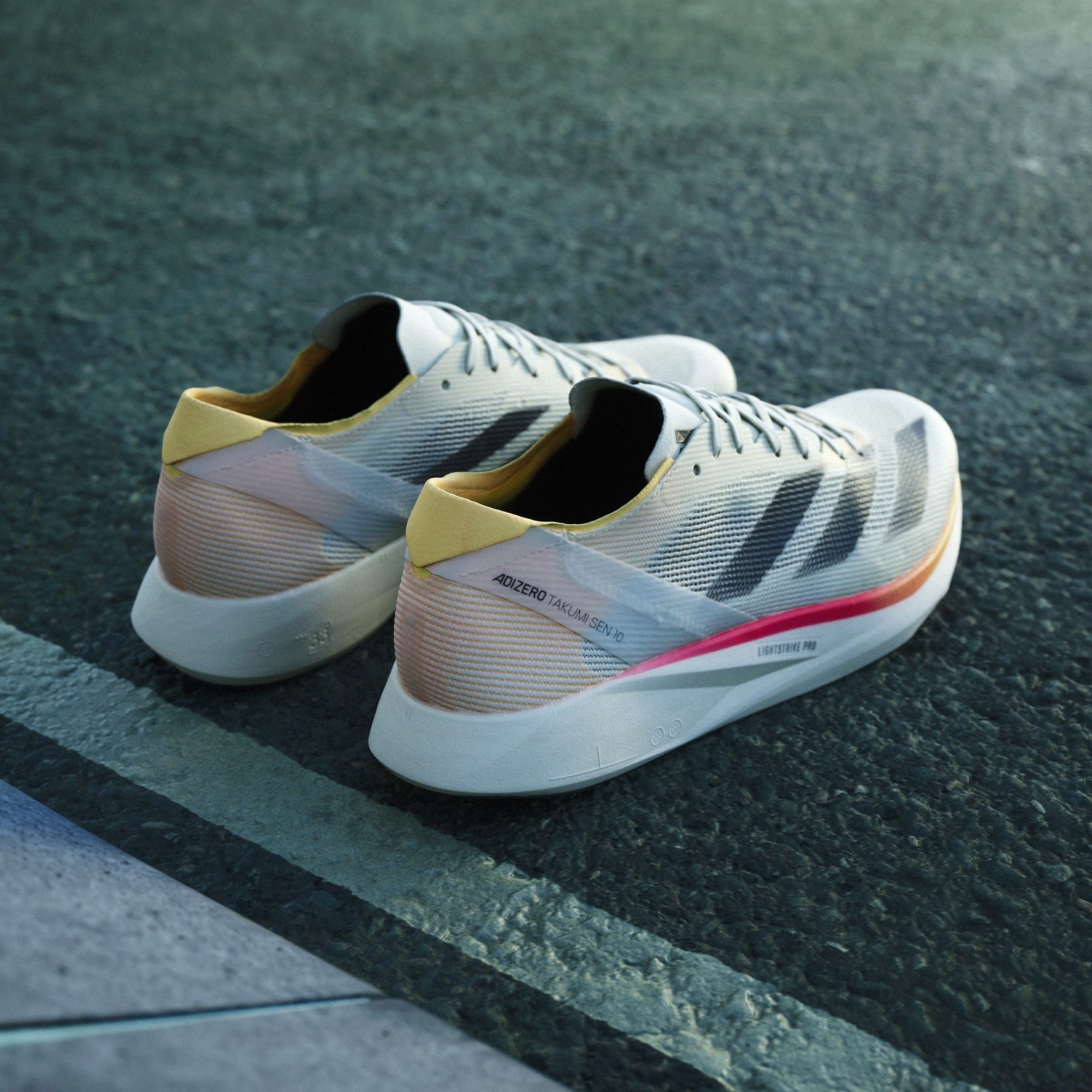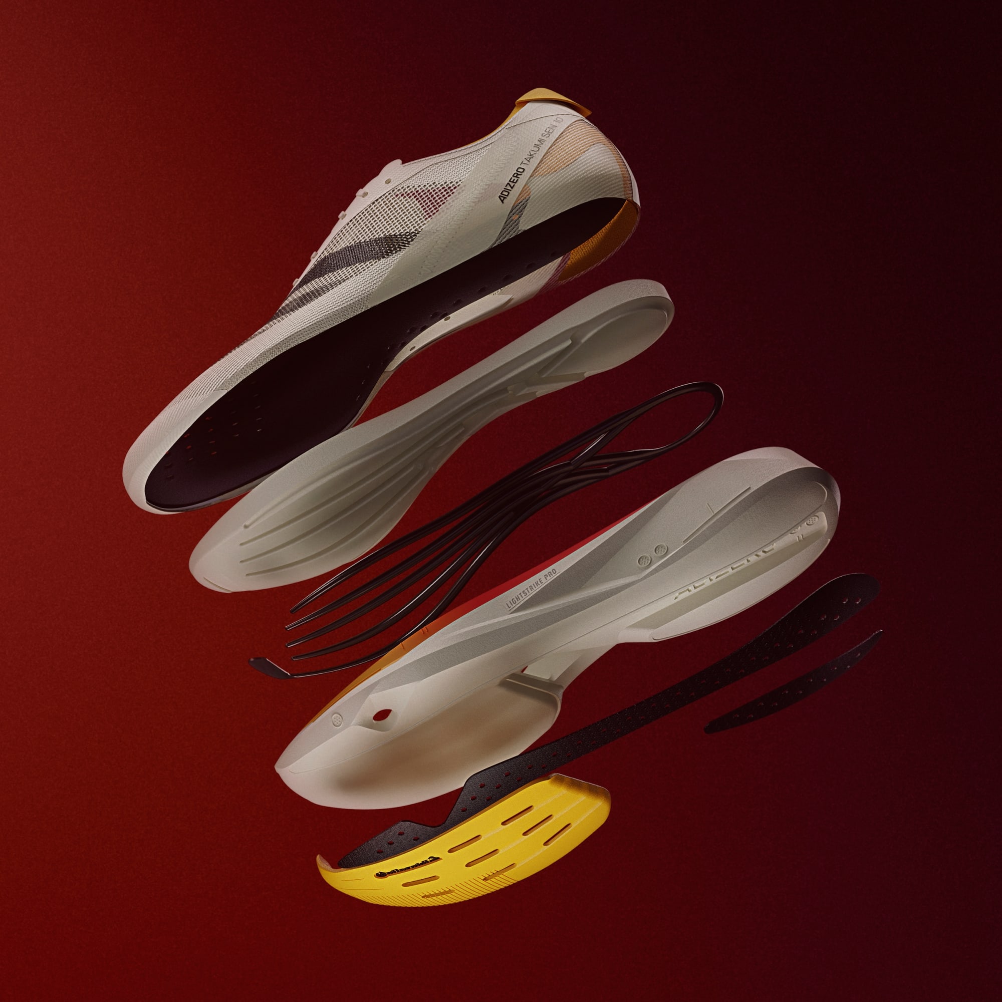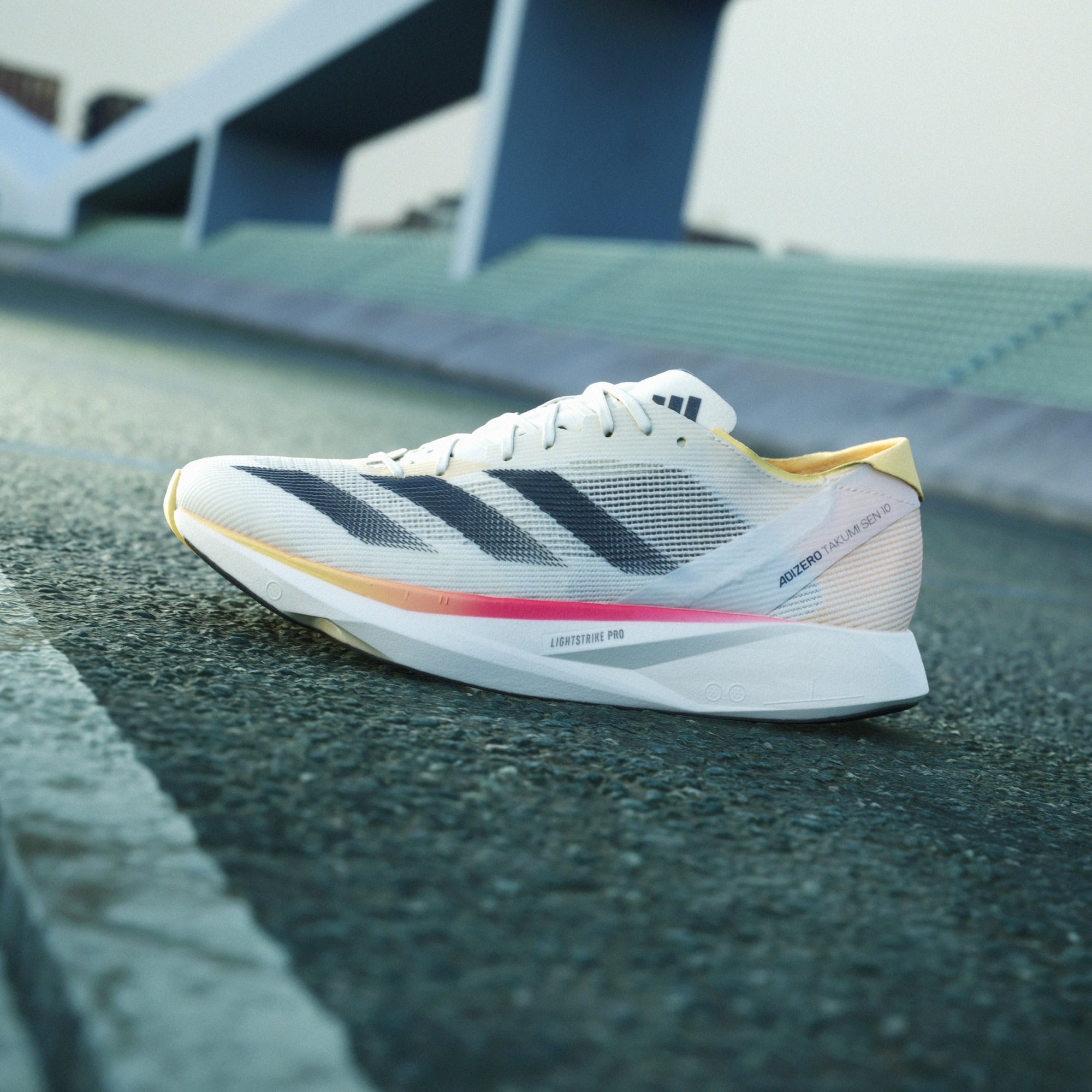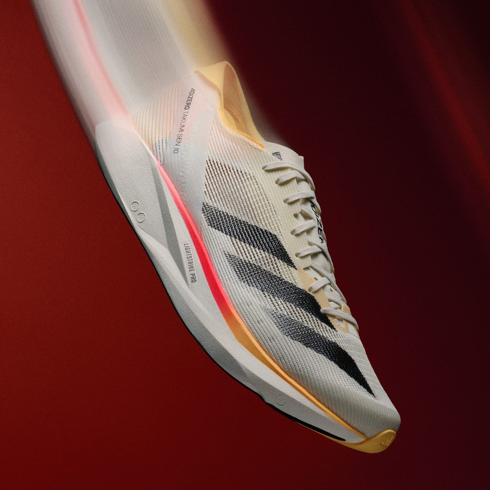 Chase your fastest 10k in our latest Adizero racing shoes, built exclusively for speed. The Adizero Takumi Sen 10 have been designed with two layers of LIGHTSTRIKE PRO cushioning, combined with ENERGYRODS for stiff and snappy toe-offs as you transition from corners to straights. Get to the finish line in your fastest time yet.