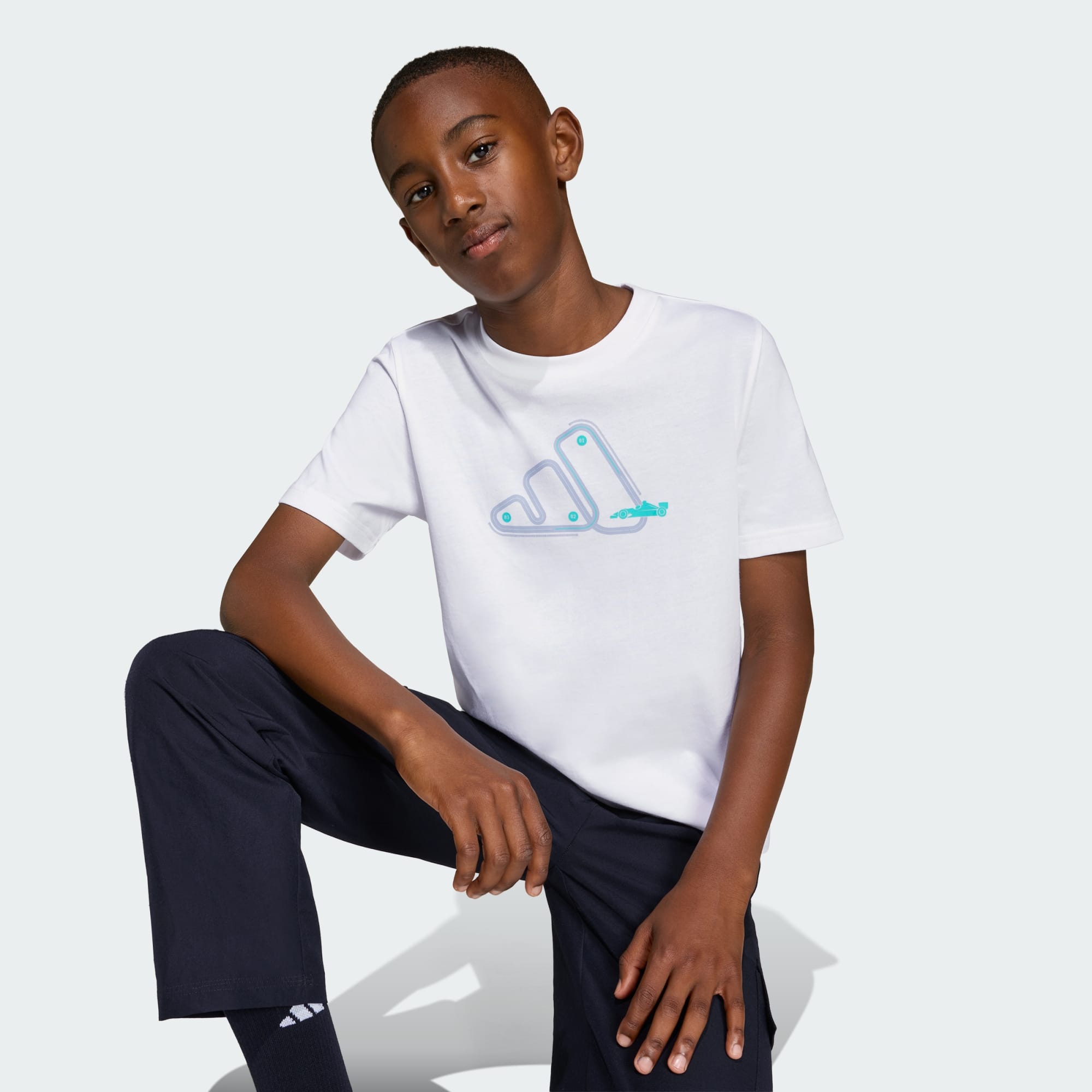 Rev up their wardrobe with the Adrenaline Aesthetic Graphic T-Shirt. Inspired by the thrill of motorsports, this t-shirt is a great choice for kids who live for speed and excitement. This adidas t-shirt is not just about style; it's about feeling great while being active. The vibrant design captures the energy of the race track, featuring a 3-bar motif that embodies the energy of adidas. Crafted from soft single jersey knit fabric, it offers a comfortable feel during playtime, school activities, or sports practice. The regular fit offers ease of movement, making it great for everyday wear. Let your junior racer embrace the thrill of the track with this dynamic and stylish tee. It's more than just a t-shirt; it's a statement of youthful energy and enthusiasm.
