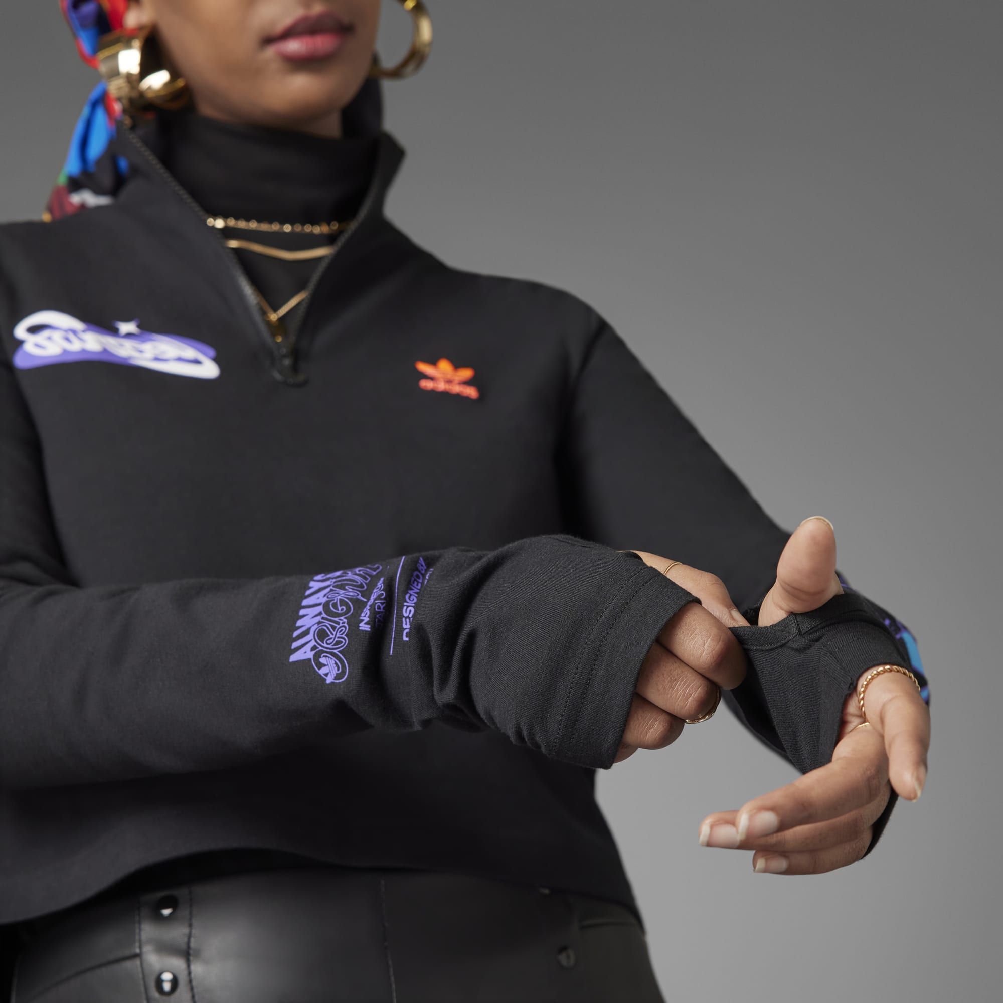 "As a young, trans girl, fantasy was the only way to affirm myself. Fantasy for queer people, especially trans folks, is how we are able to survive and gives us the ability to blueprint how we want our lives to be. So yeah! Live your Fantasy!" – Jari Jones Motivated by the beauty found in uniqueness, we celebrate the power of united individuality. This is Always Original, a capsule range co-created with Collective Power. Enter the Always Original Long Sleeve Cropped Top. Inspired by Jari, with bold graphics designed by Naomi Otsu, it features a dynamic collage of icons and colorful typography. The 'Live your Fantasy' sign-off on the back is a reminder that your life is defined by you.