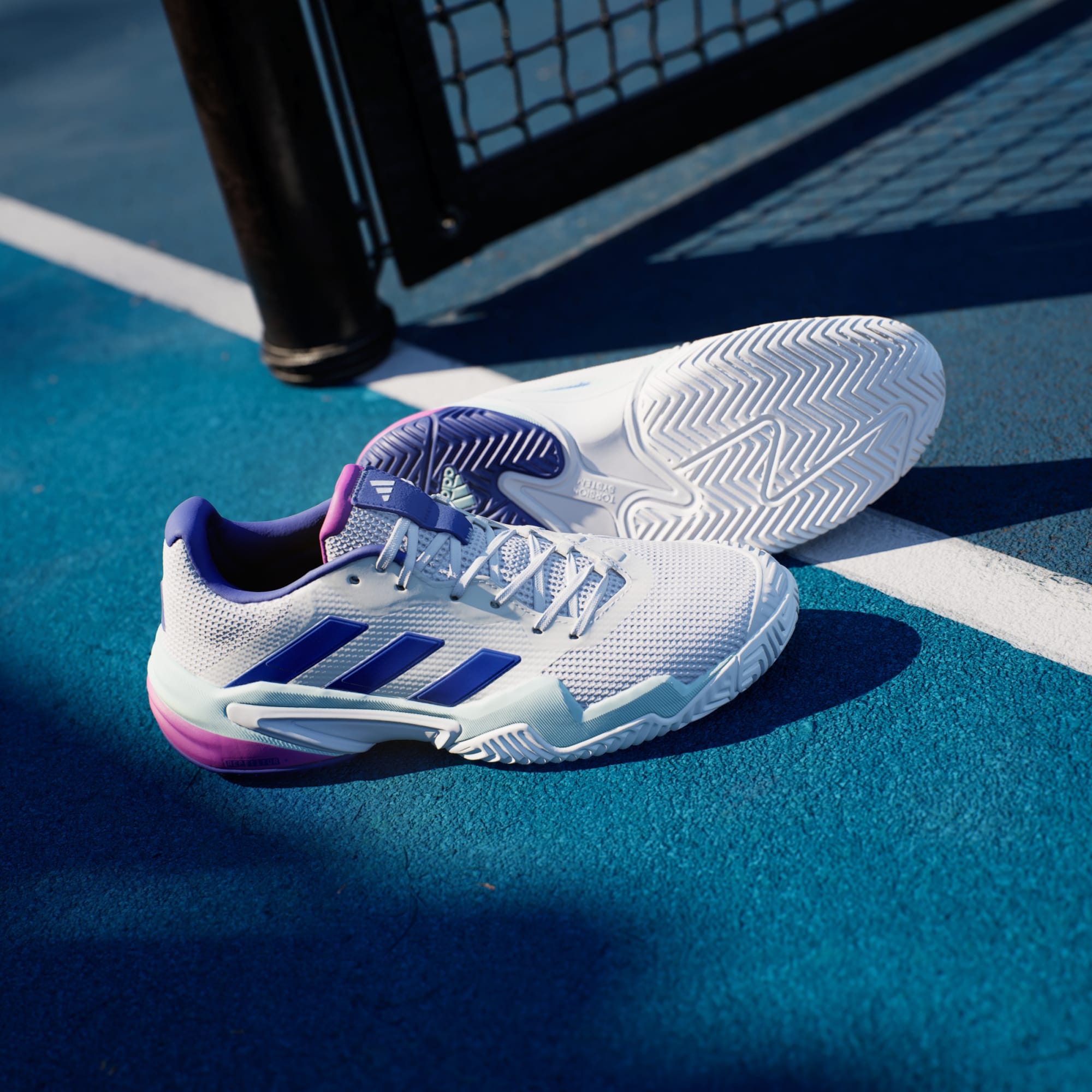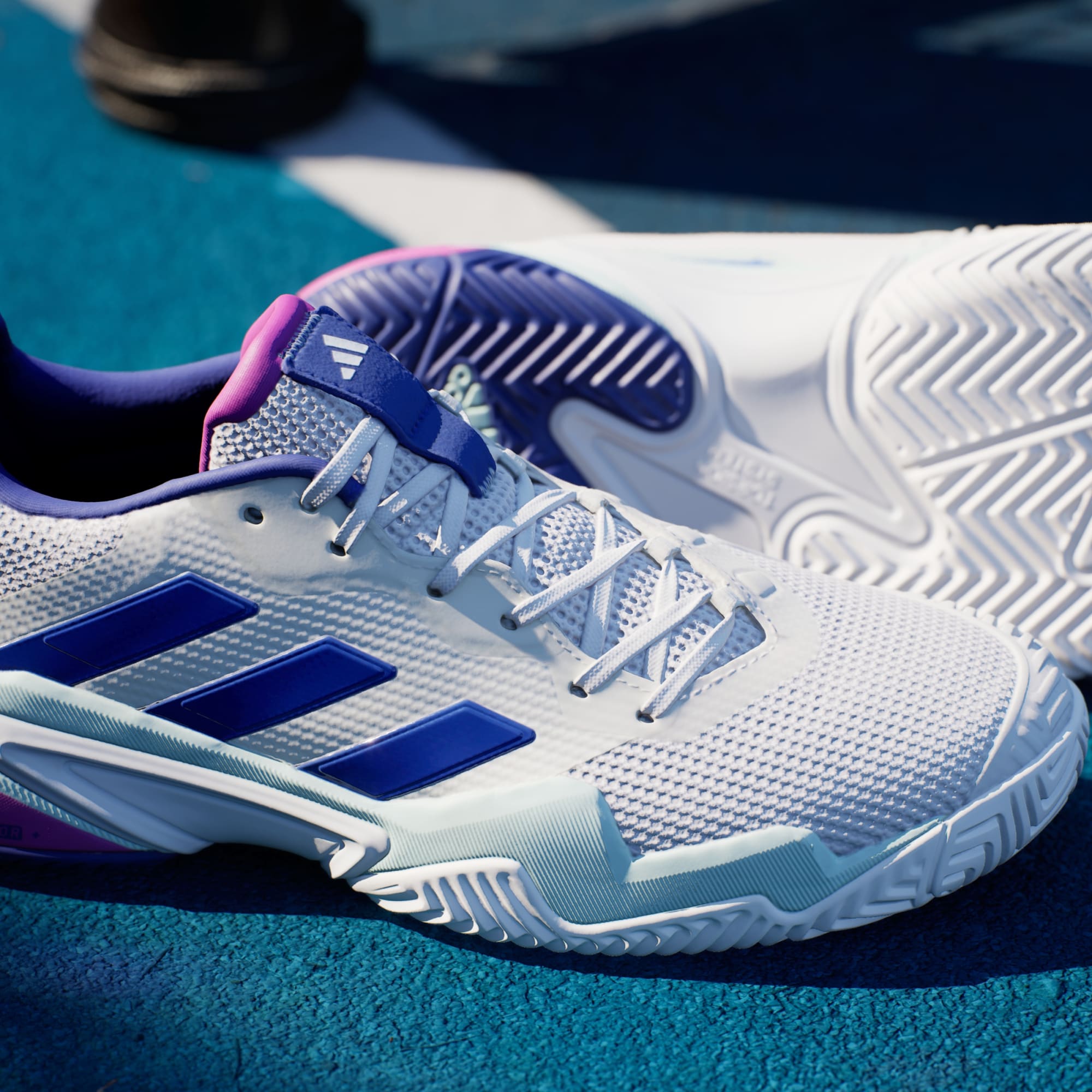 Take control of the court in these adidas Barricade tennis shoes. Torsion System provides match-turning stability, while the asymmetric lacing locks you in for quick cuts and slides. A REPETITOR midsole adds support and smooth transitions from one step to the next. Geofit Sensepods follow your heel's natural shape, ensuring comfort and support that lasts through to match point. This product features at least 20% recycled materials. By reusing materials that have already been created, we help to reduce waste and our reliance on finite resources and reduce the footprint of the products we make.