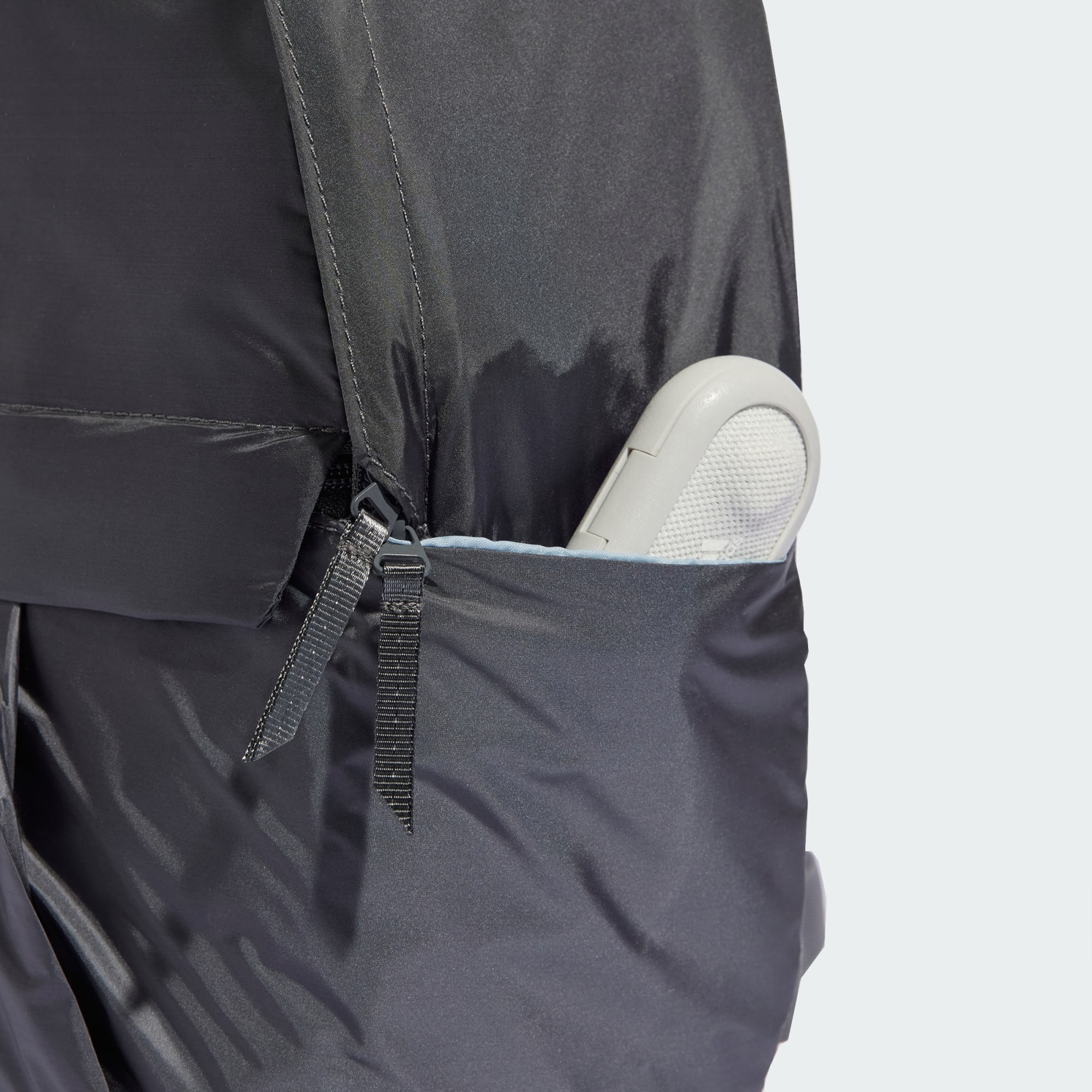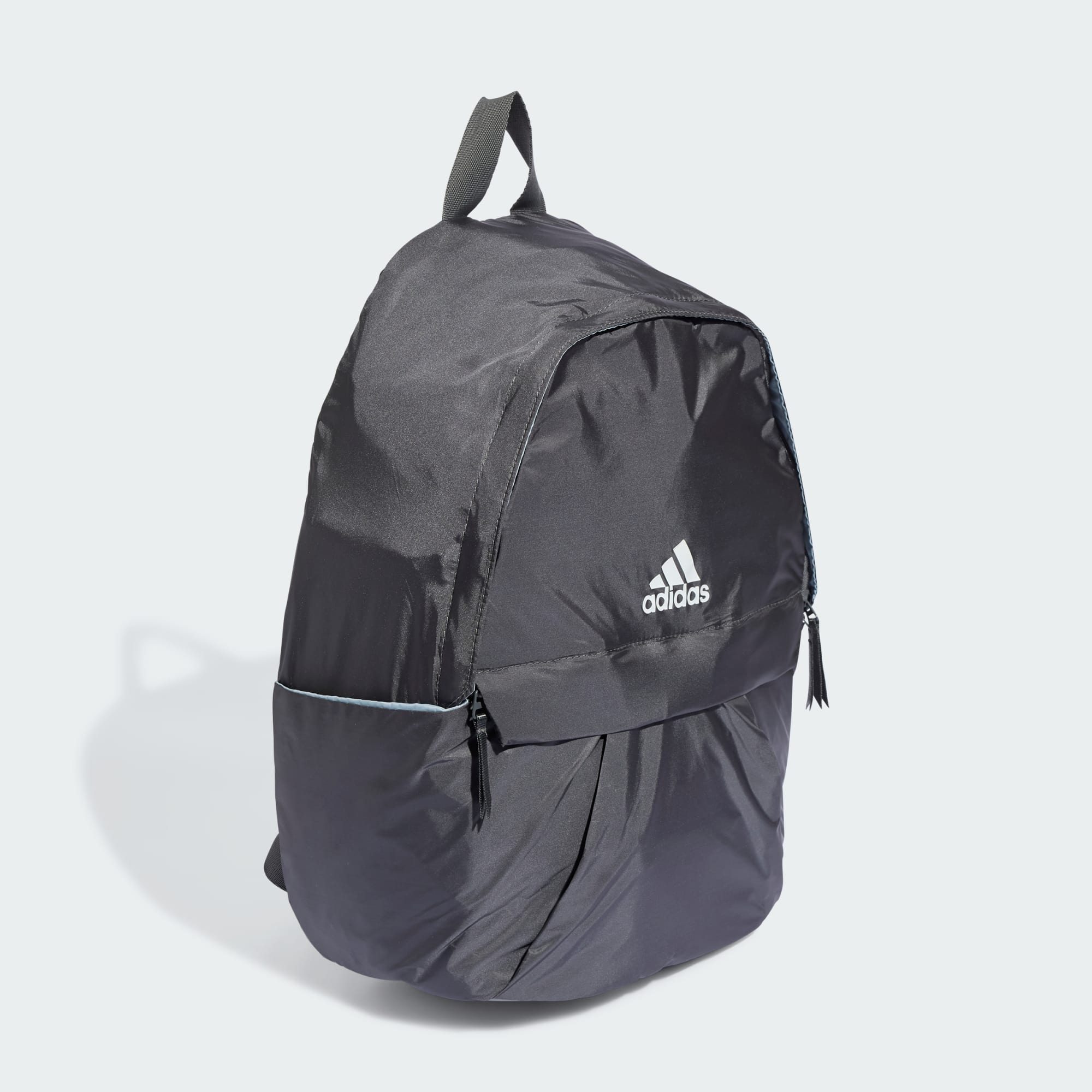 Heading for the office, the gym or further afield, this shiny backpack covers all bases. A mesh panel at the back helps you stay cool and comfortable when you're on the move. A hidden pocket keeps your phone, cards and keys safely tucked away, while the handy D-ring secures any last-minute additions to your load. Made with a series of recycled materials, and at least 40% recycled content, this product represents just one of our solutions to help end plastic waste.