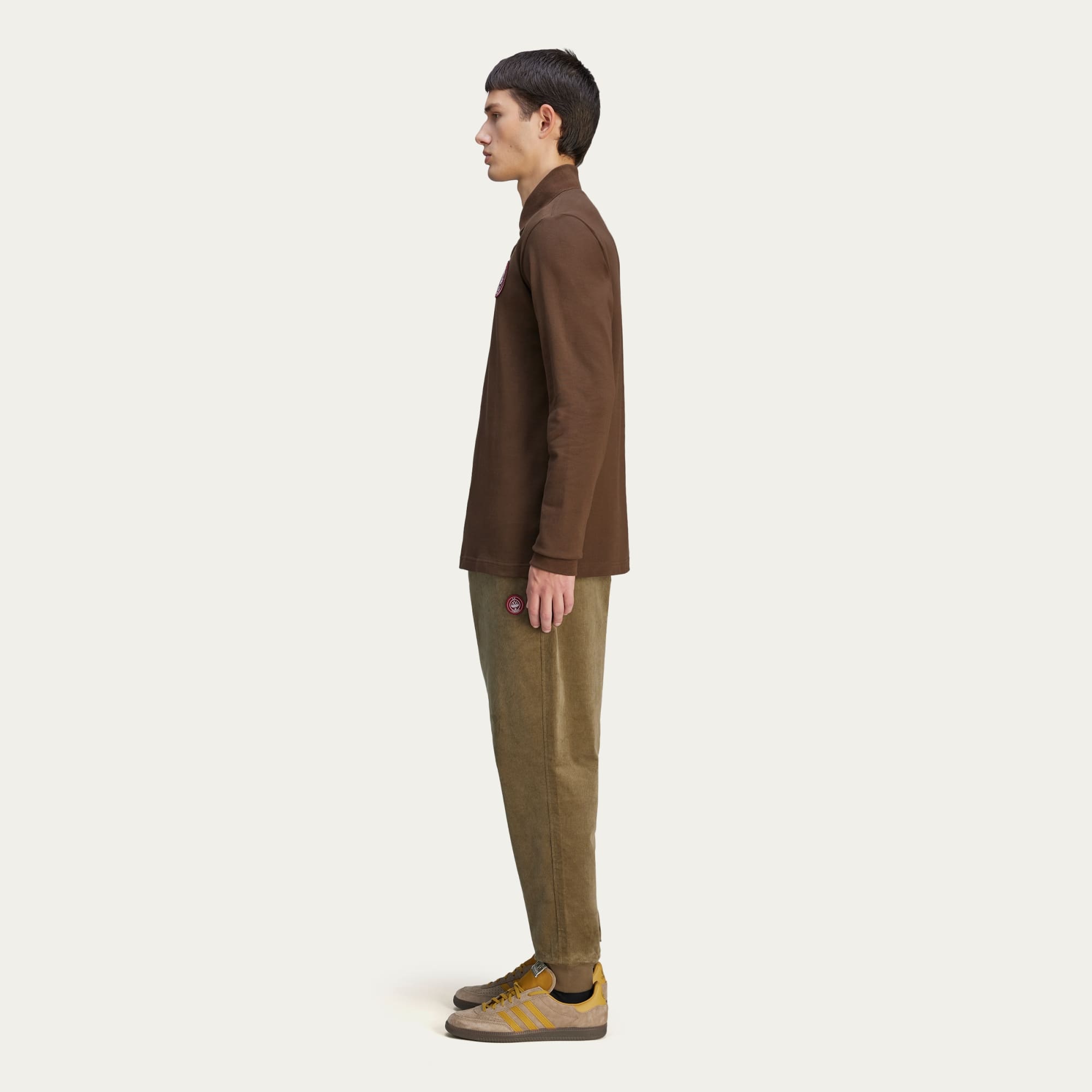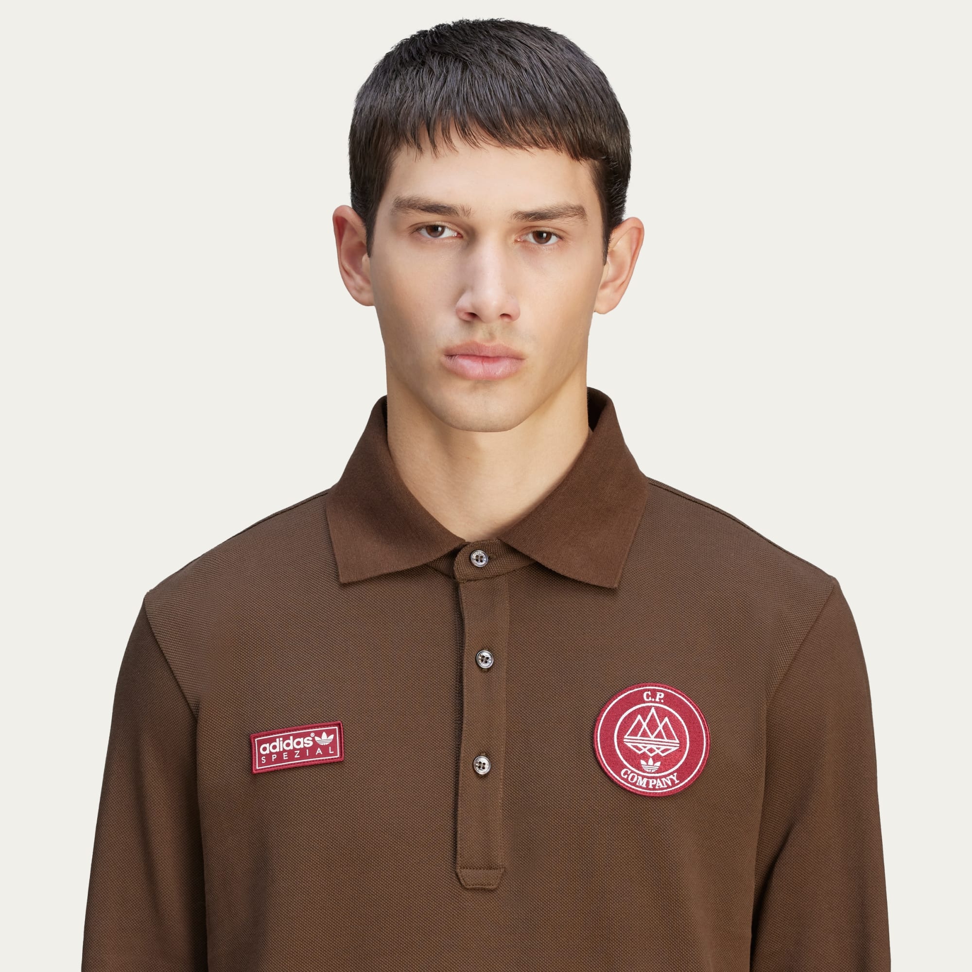 adidas Spezial and legendary Italian label C.P. Company unite once again, this time in celebration of adidas Spezial's 10-year anniversary. Using our shared design language to establish a strong perspective throughout the entire collection, together we explore and elevate classic silhouettes from both brands' storied history. The CP SPZL Polo is crafted in classic pique material with ribbed details. An essential, the top highlights the key logos of the range in red, which pop against the deep brown overall colour.