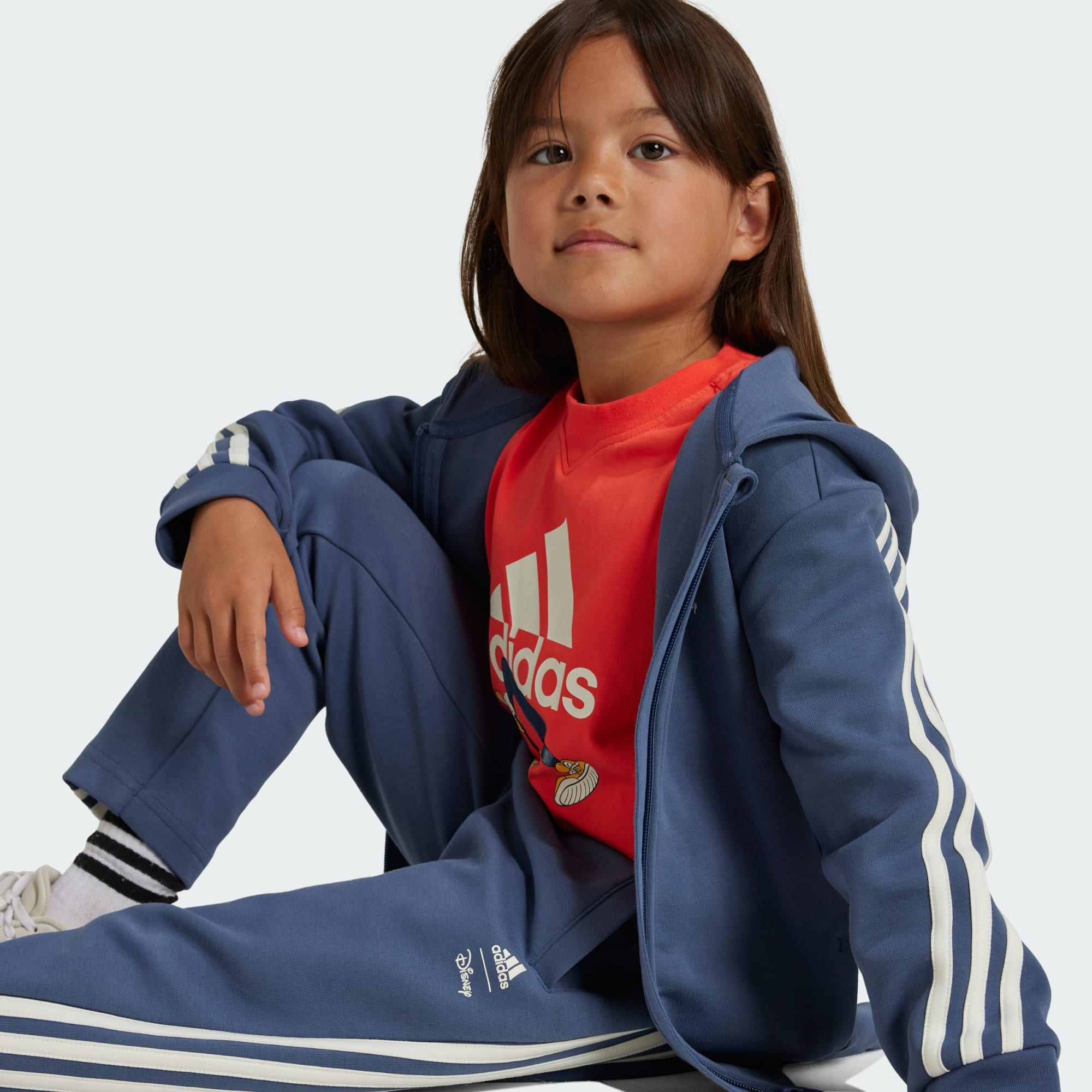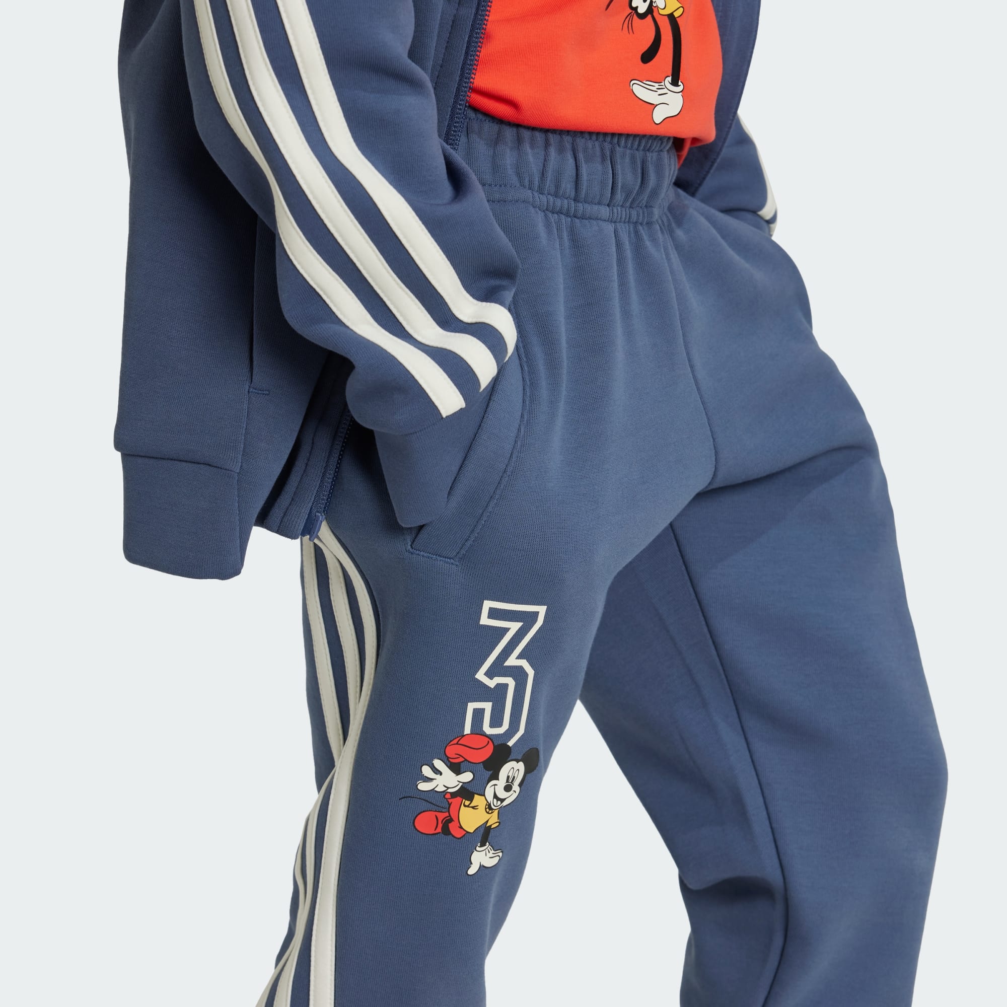These playful adidas pants for kids combine Disney's Mickey Mouse with easy-to-wear comfort. Little athletes can express their active side as they go about their adventures in style. Featuring Mickey in a glossy print on one leg, they're made from a comfortable doubleknit fabric that keeps kids cosy as their imaginations dream big. By choosing recycled, we are able to reuse materials that have already been created, which helps to reduce waste. Renewable materials choices will help us to remove our reliance on finite resources. Our products made with a blend of recycled and renewable materials feature at least 70% total of these materials.