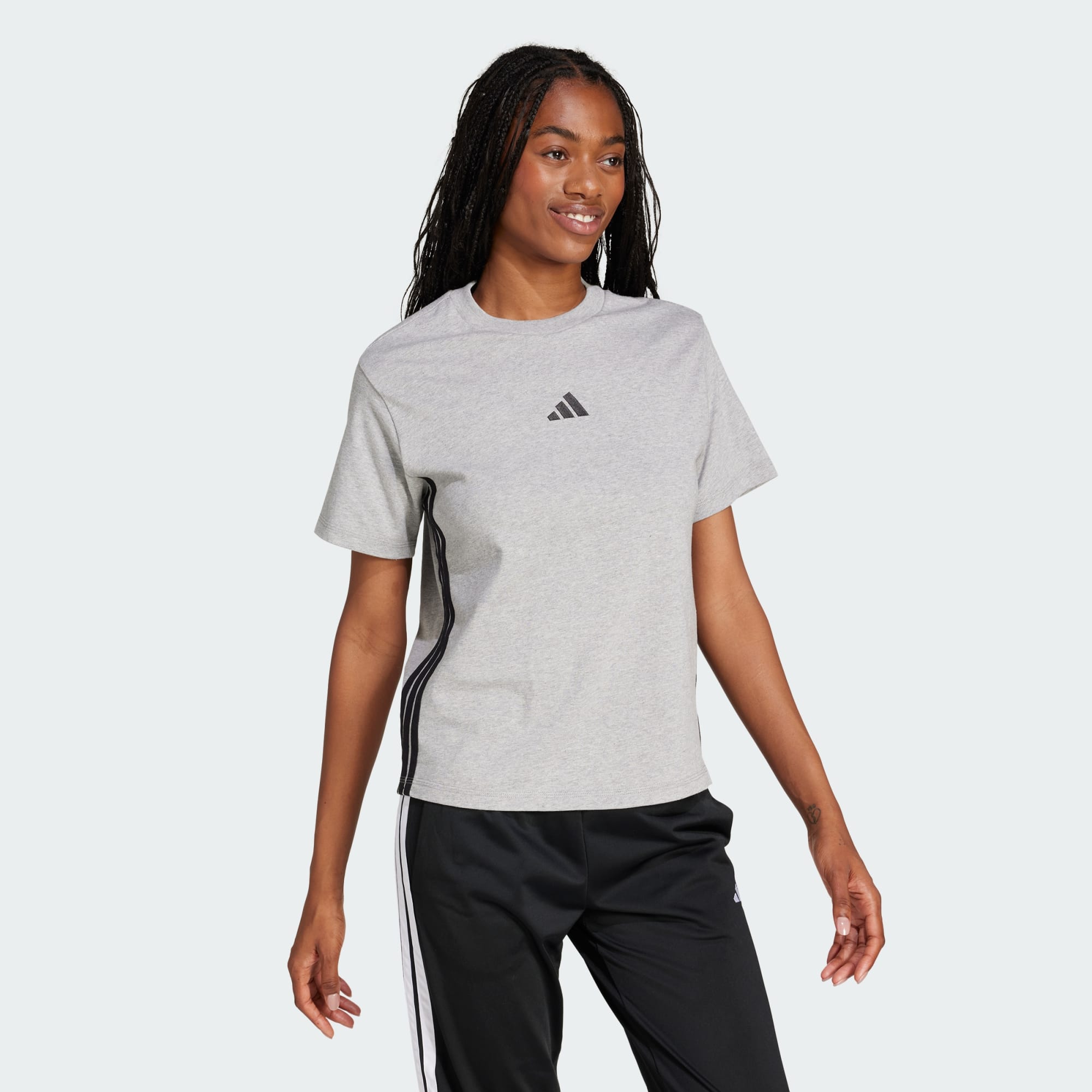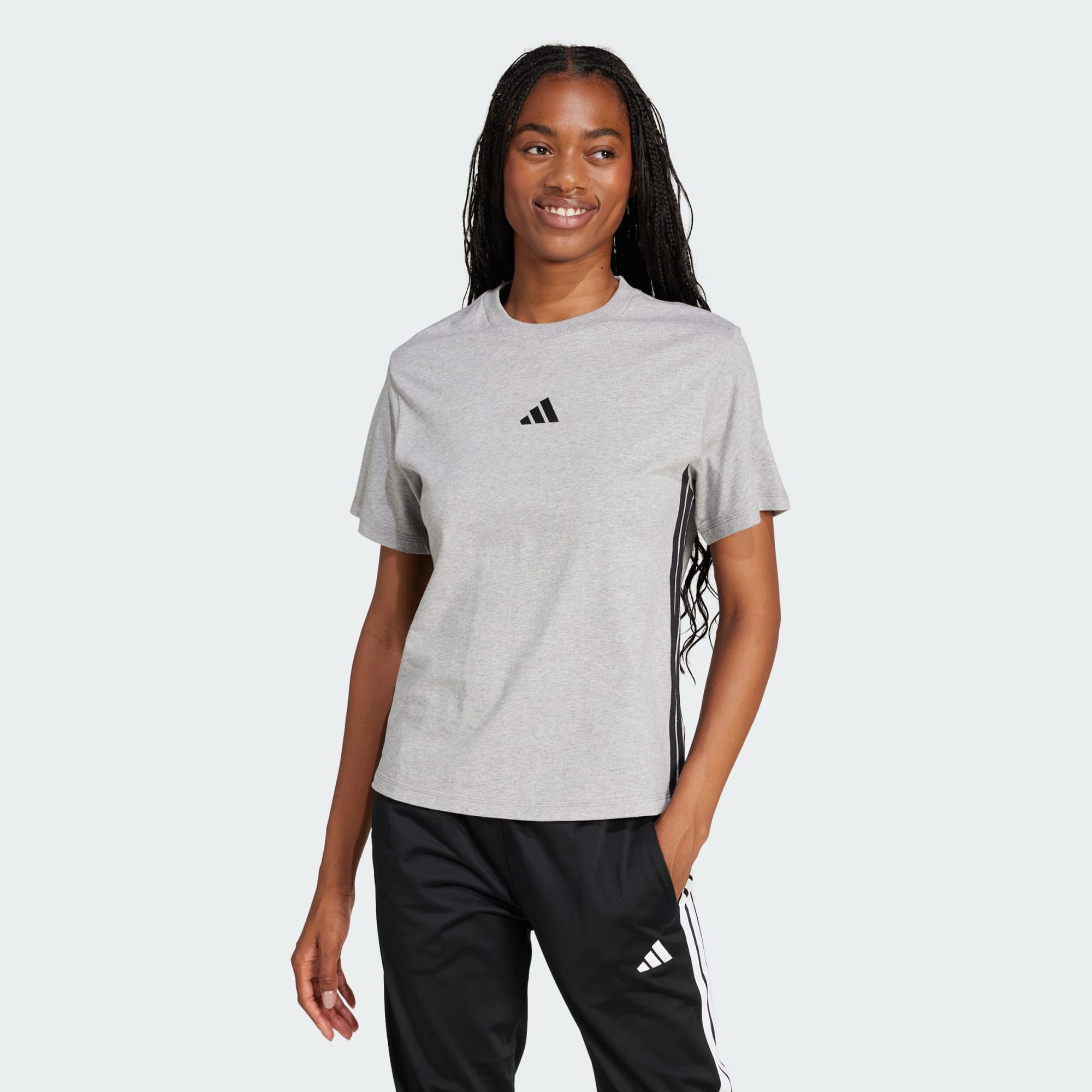 Effortless style meets everyday comfort in this adidas tee. The soft fabric feels great against your skin whether you're running errands or lounging at home. Classic 3-Stripes down the sleeves add a sporty touch that's signature adidas. Pair it with your favourite jeans or joggers for a look that's always in fashion.