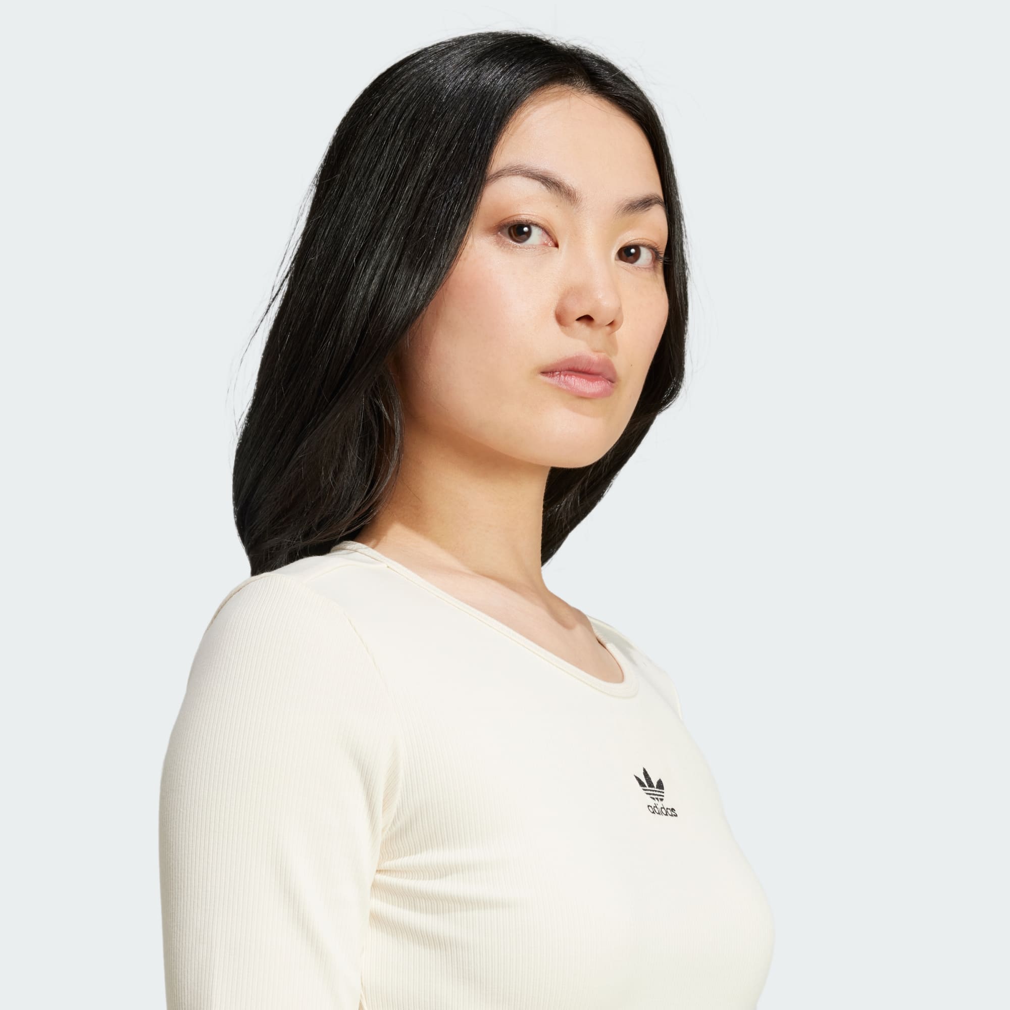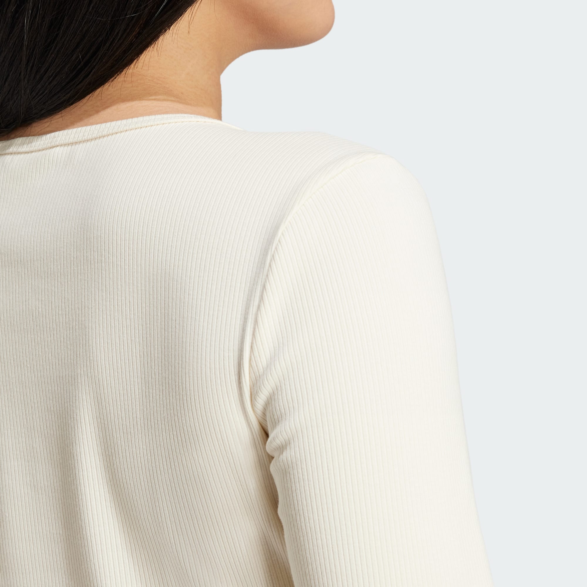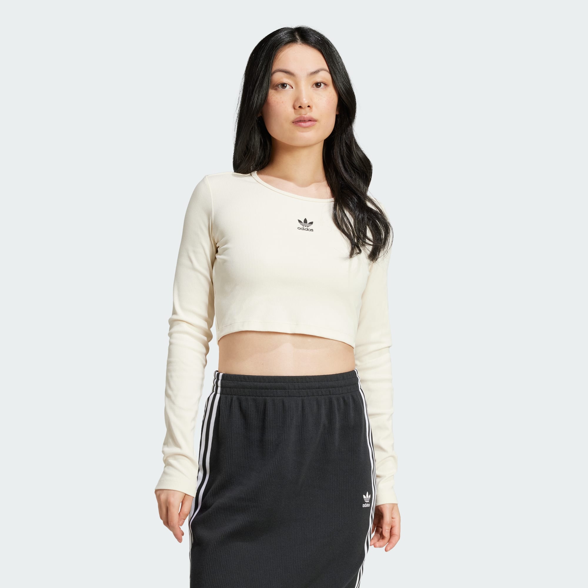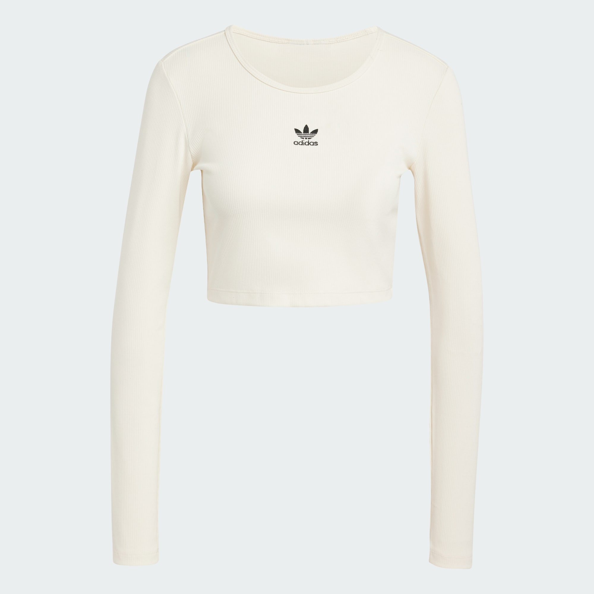 Soft and stretchy, this adidas long sleeve t-shirt hugs you in all the right places. The ribbed knit moulds to your shape while still allowing free range of movement. Cropped to hit at the waist, this lightweight essential pairs just as easily with high-rise joggers for lounging as it does with a miniskirt and sneakers for nights out with friends.