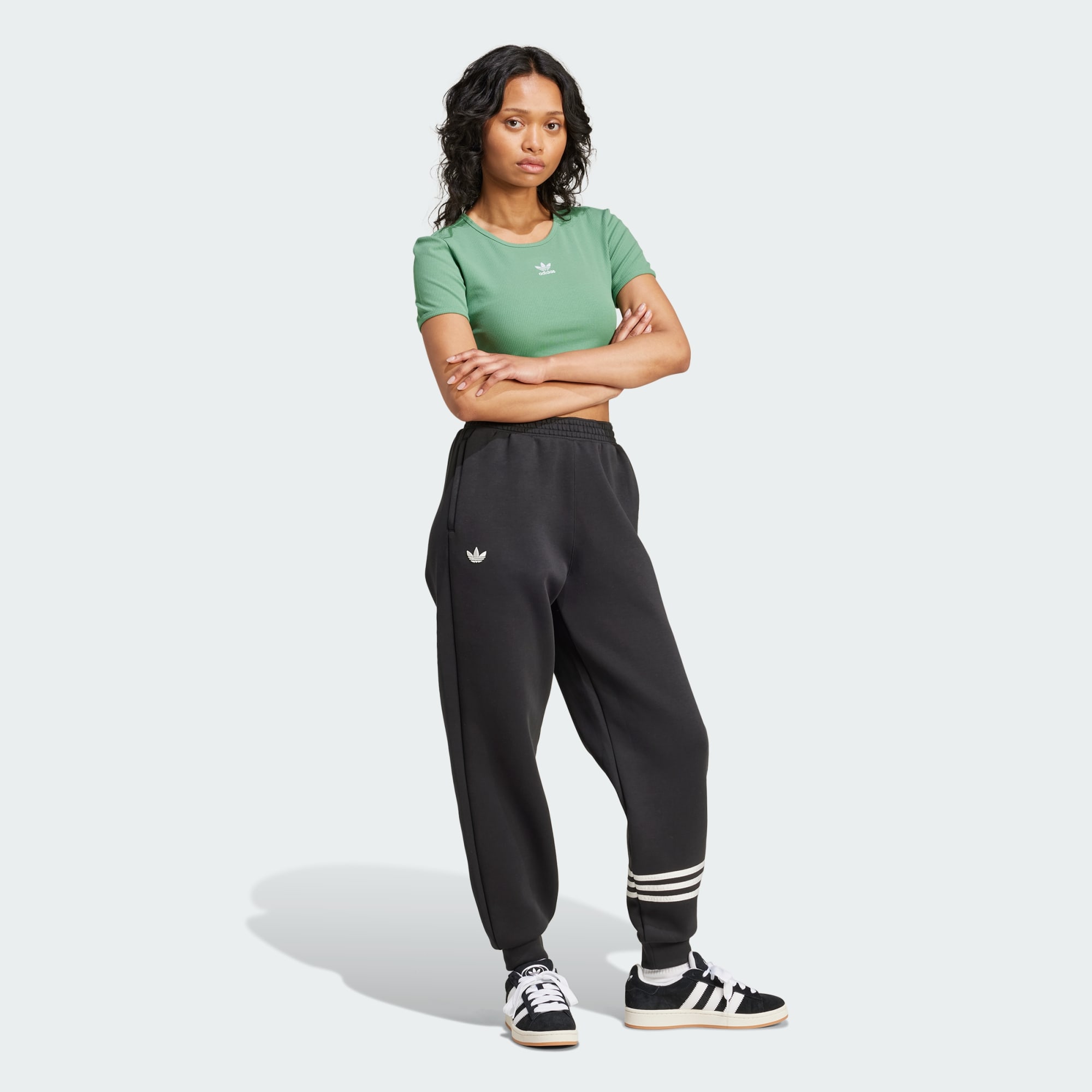 Slip into the fitted contours of this adidas t-shirt and experience comfort on a whole new level. The fine rib knit and slim fit hug your shape while still allowing free range of movement. Its crop length makes it a versatile essential that's perfect for pairing with high-rise jeans for a night out or with joggers on chill days.
