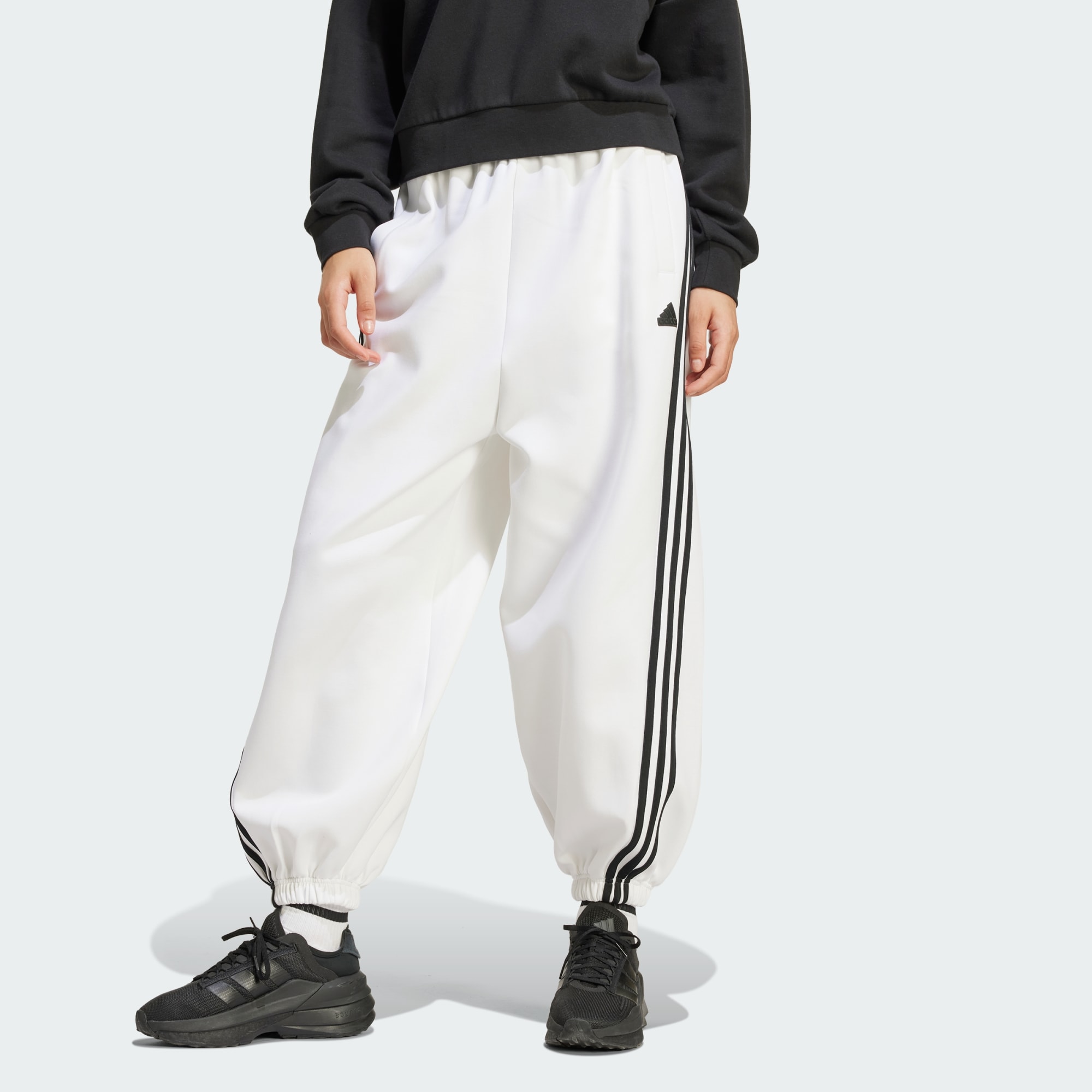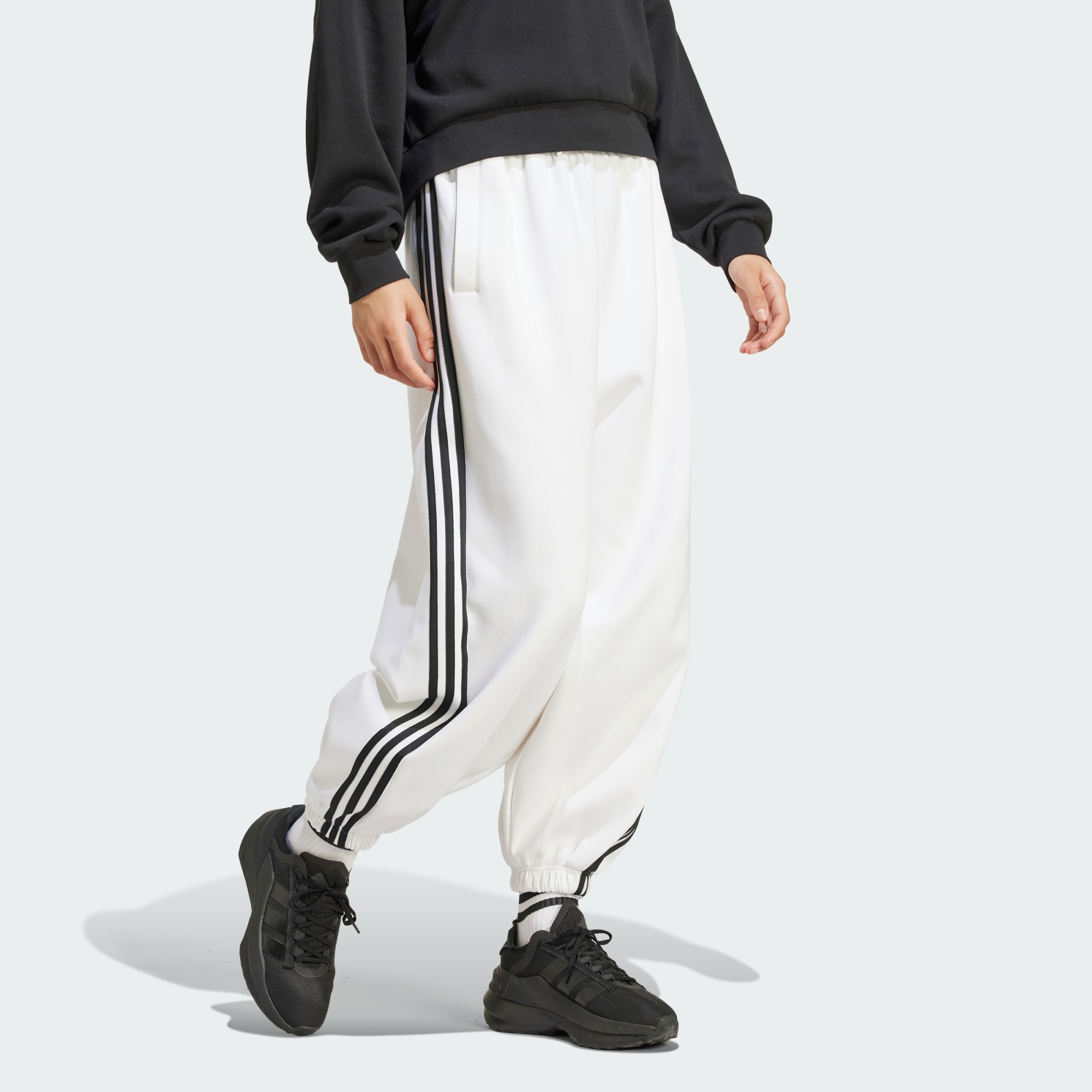 Realise life's adventures in comfort and style. The premium interlock fabric of these adidas pants moves with you whether you're exploring the city or escaping for the weekend. Iconic 3-Stripes down the sides nod to brand heritage while giving your off-duty look serious style. The modern, parachute silhouette feels effortless and airy. Slip these pants on and get lost in the moments that matter. By choosing recycled, we are able to reuse materials that have already been created, which helps to reduce waste. Renewable materials choices will help us to remove our reliance on finite resources. Our products made with a blend of recycled and renewable materials feature at least 70% total of these materials.