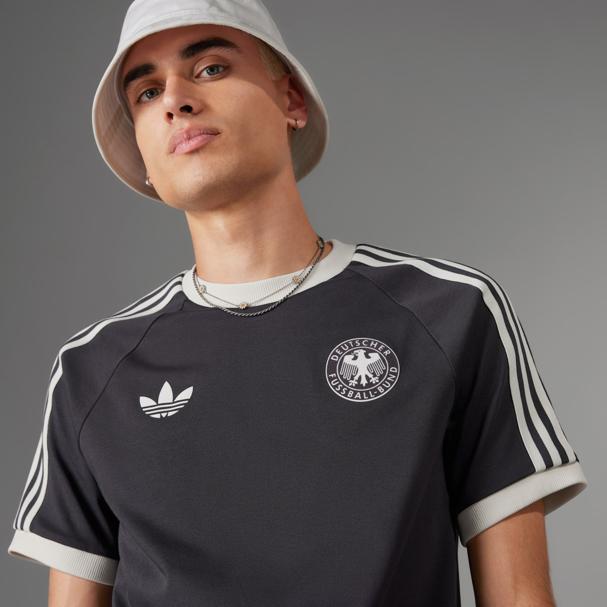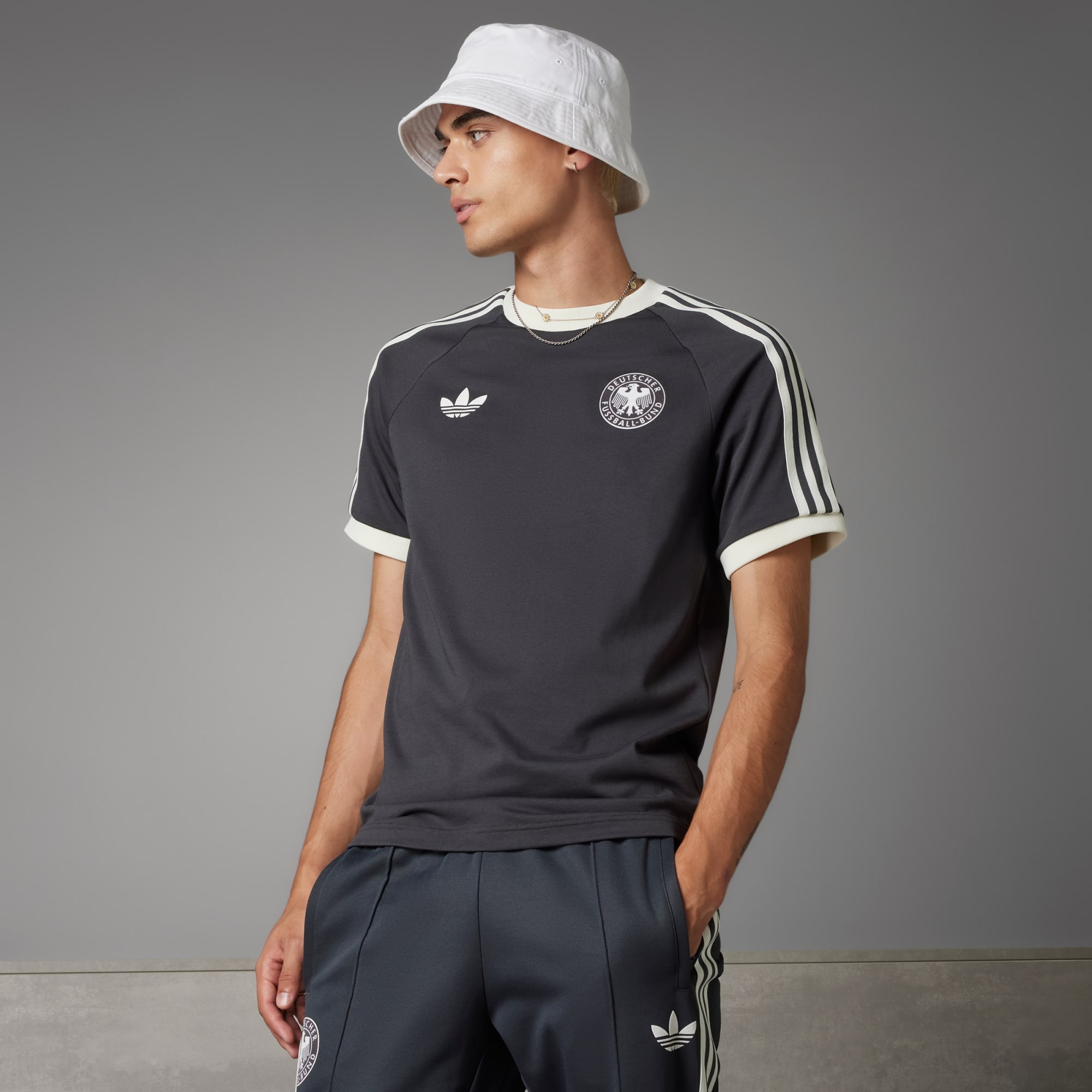 Elevate your style with the Germany Adicolor Classics 3-Stripes Tee, epitomizing the fervor of German football enthusiasts. Whether in the stands or among fellow fans, the tee shows off your team's colors.Designed for ultimate comfort, the tee is cut for a slim fit with a luxe ribbed crewneck. The iconic 3-Stripes pay homage to adidas' legacy intertwined with Germany's football heritage. At its core, the Germany suede print crest symbolizes your unwavering allegiance — a representation of your devotion and love for the beautiful game. Whether on the field or in the city, the Germany Adicolor Classics 3-Stripes Tee seamlessly blends passion with contemporary design, a resounding testament to your loyalty to German football.