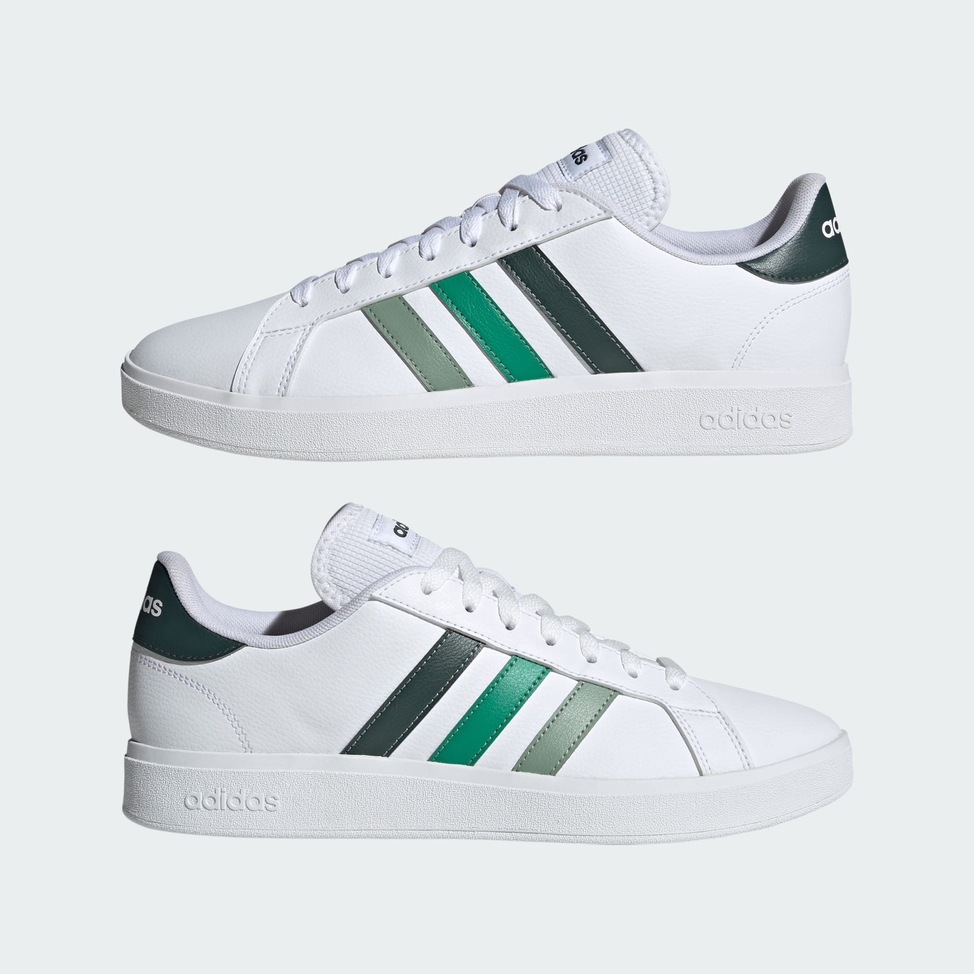 These adidas shoes are a court-inspired icon reimagined for a new generation. They have a synthetic leather upper and signature details that stay true to the style's sporty heritage. A rubber outsole grips the ground as you move through your day.