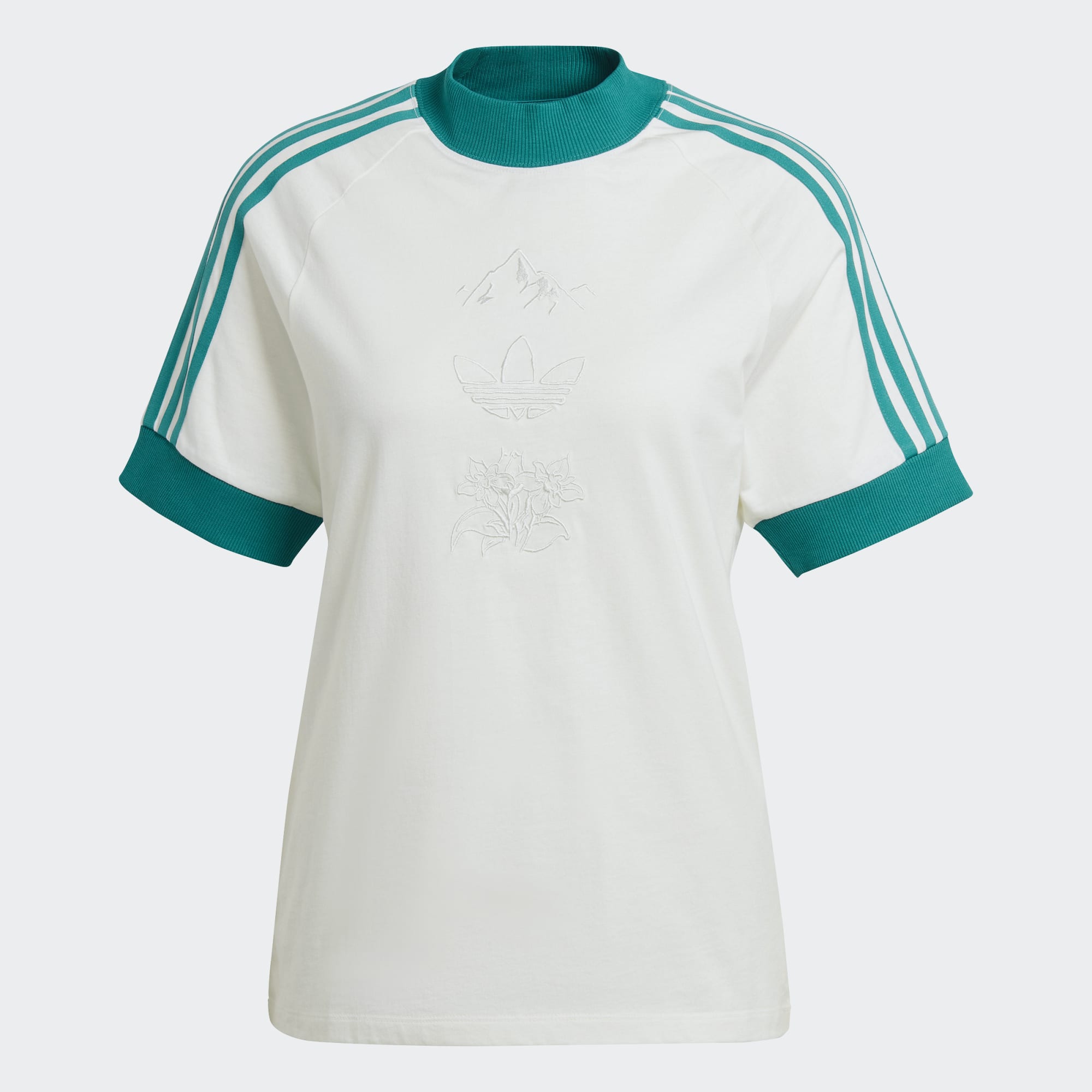 Put on this casual adidas t-shirt with denim or shorts, and you've got easygoing style down. With graphic embroidery centred by a Trefoil, it plays up contrast colours and the iconic 3-Stripes for an artistic, laid-back look. A thick ribbed neck and cuffs adds a touch of tailoring, and pure cotton jersey aims for comfort around the clock.