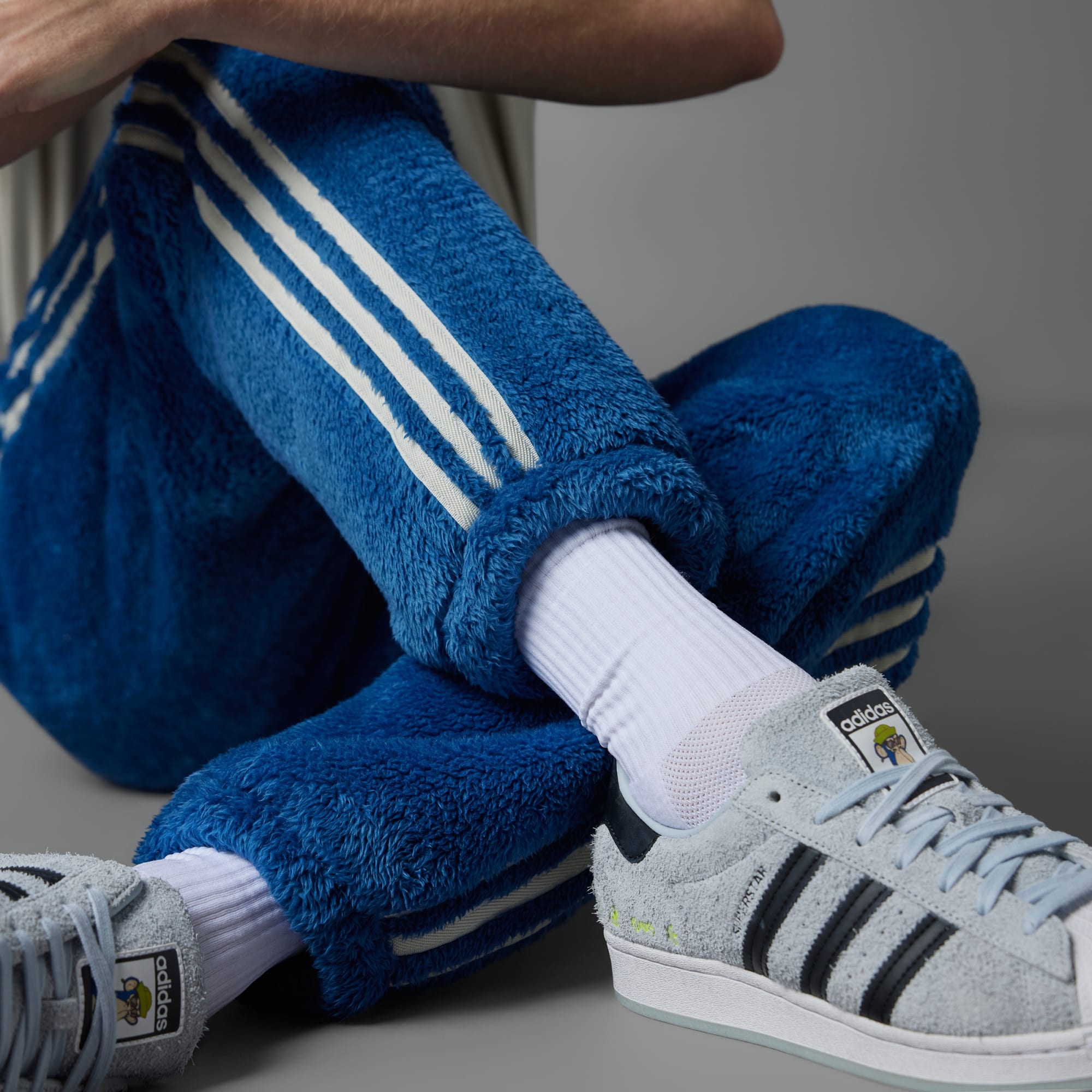 The blue faux fur fabric is inspired by adidas Originals-owned NFT, Indigo Herz.