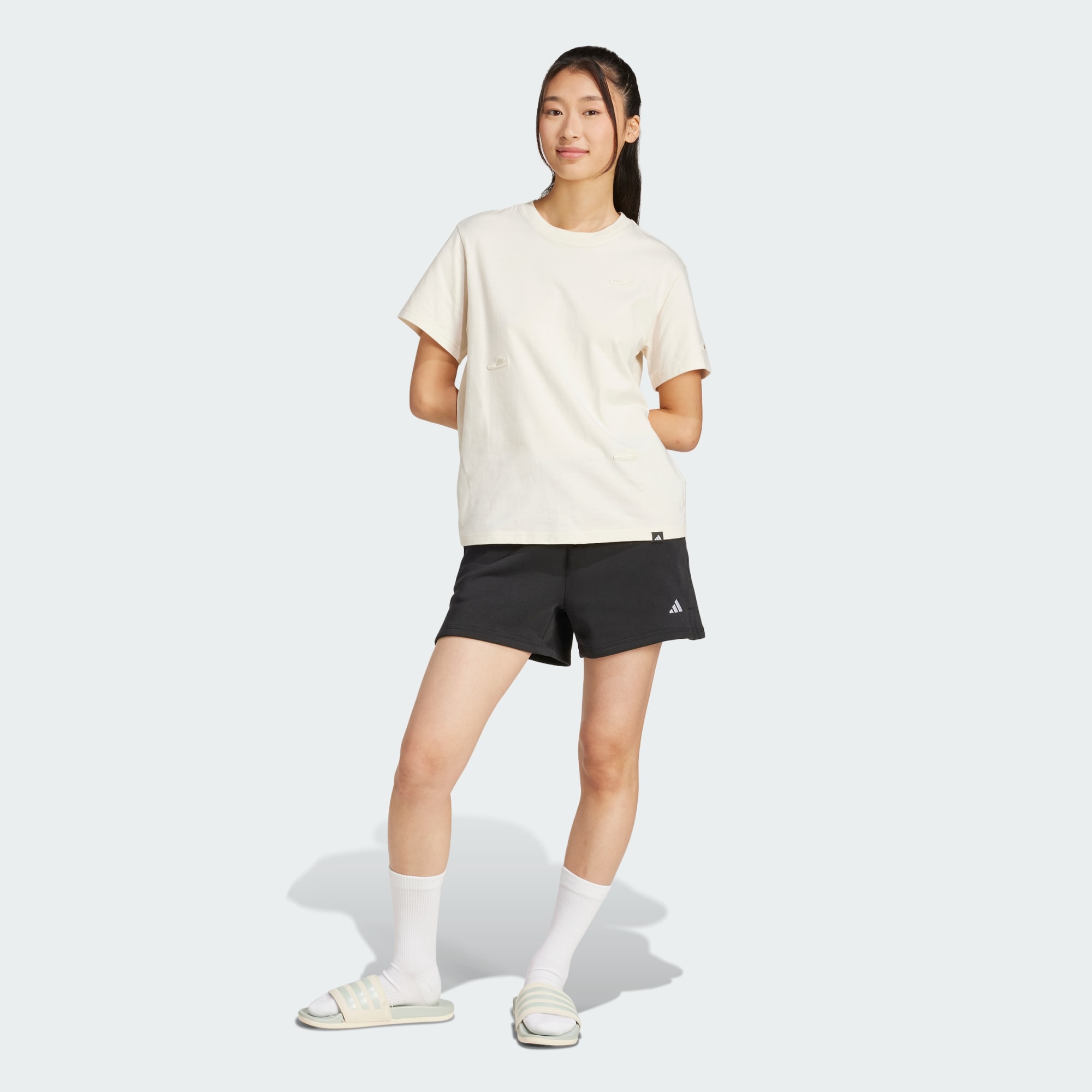 Whether you're out for a stroll or just lounging at home, this soft cotton tee keeps you comfortable. The classic cut provides plenty of room to move without restriction. For a touch of pure adidas style, a subtle graphic inspired by shower slides stands out on the front.