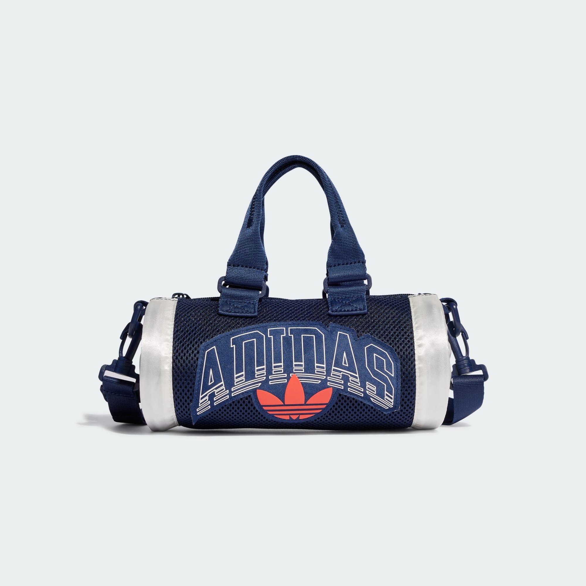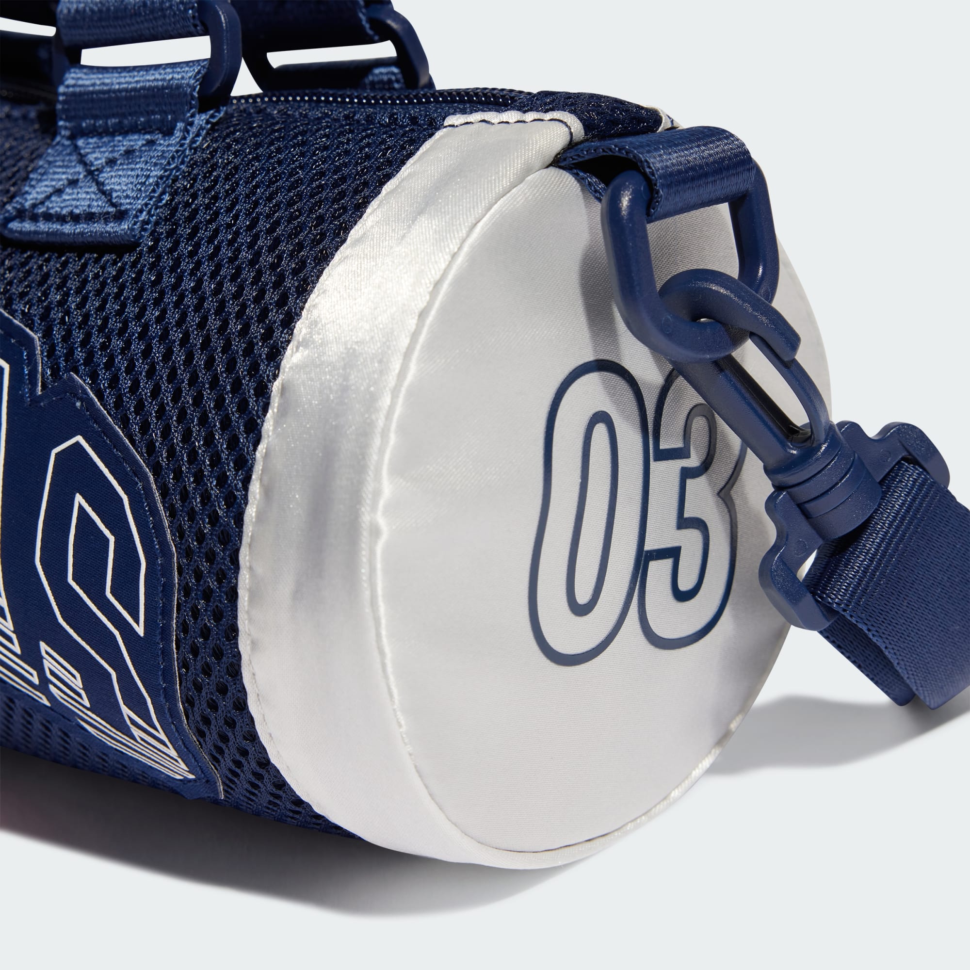 The unmistakable look of '80s basketball fashion and Americana inspired this adidas duffel bag. With distinct style, it lets you pack essentials in the main compartment and stash smaller items in the zip pocket. Adjust the strap to carry it over your shoulder or grab the handles for a quick grab and go. The mix of mesh material and shiny satin give it a fresh look that's ready for life in the city. This product is made with at least 50% recycled materials. By reusing materials that have already been created, we help to reduce waste and our reliance on finite resources and reduce the footprint of the products we make.