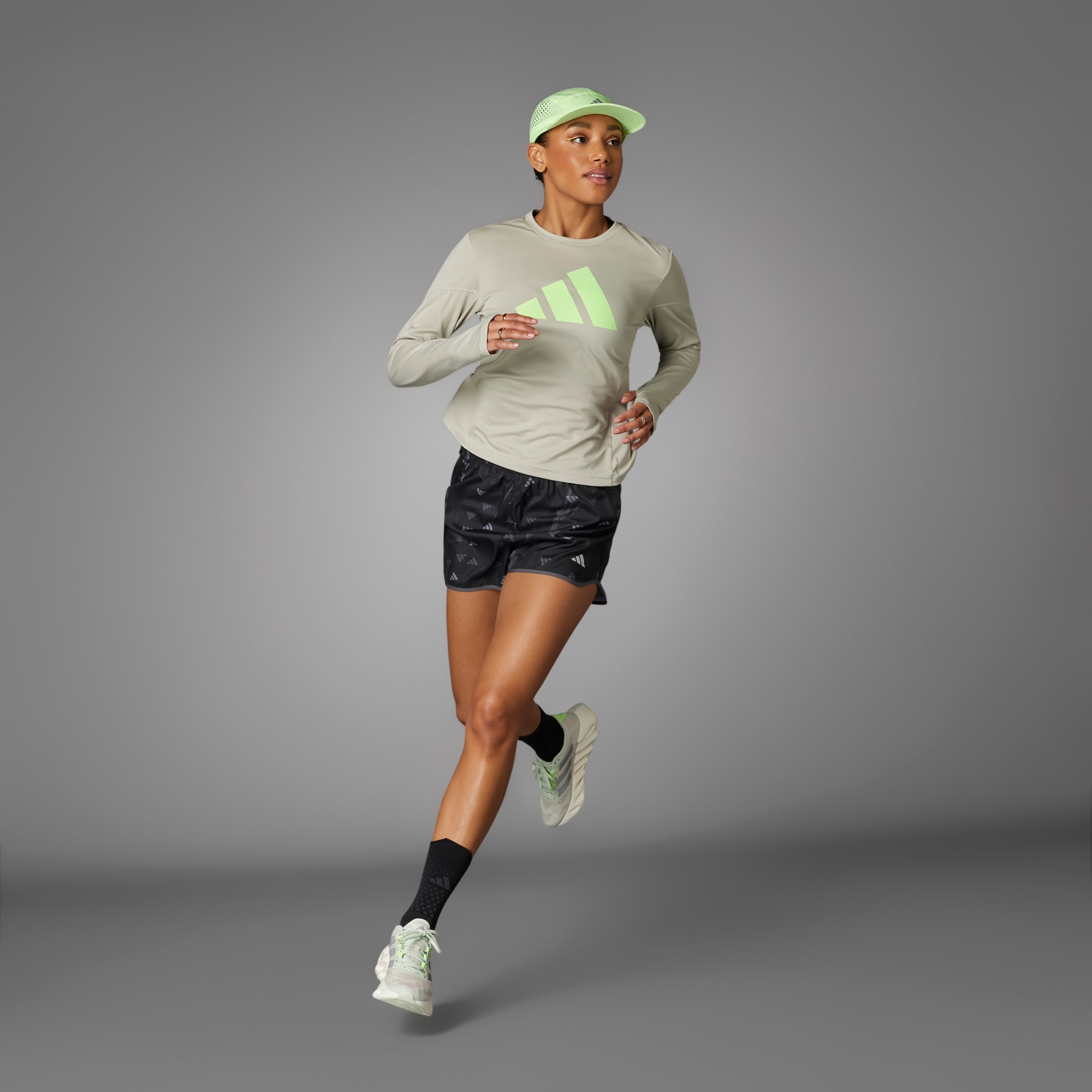 Let your originality show as you put your body in motion. The Run It collection celebrates self-expression while helping you thrive, empowering you to get the most out of your runs. A perfect fusion of functionality and design, the Run It Brand Love Shorts carry a vibrant print to make you stand out. Speed up your pace worry-free knowing that the reflective details ensure you are seen in low lights, and feel comfortable at every mile as AEROREADY keeps you dry. The slim fit with a high-rise gives extra coverage for your midsection, providing more comfort on the way. This product is made with at least 60% recycled materials. By reusing materials that have already been created, we help to reduce waste and our reliance on finite resources.