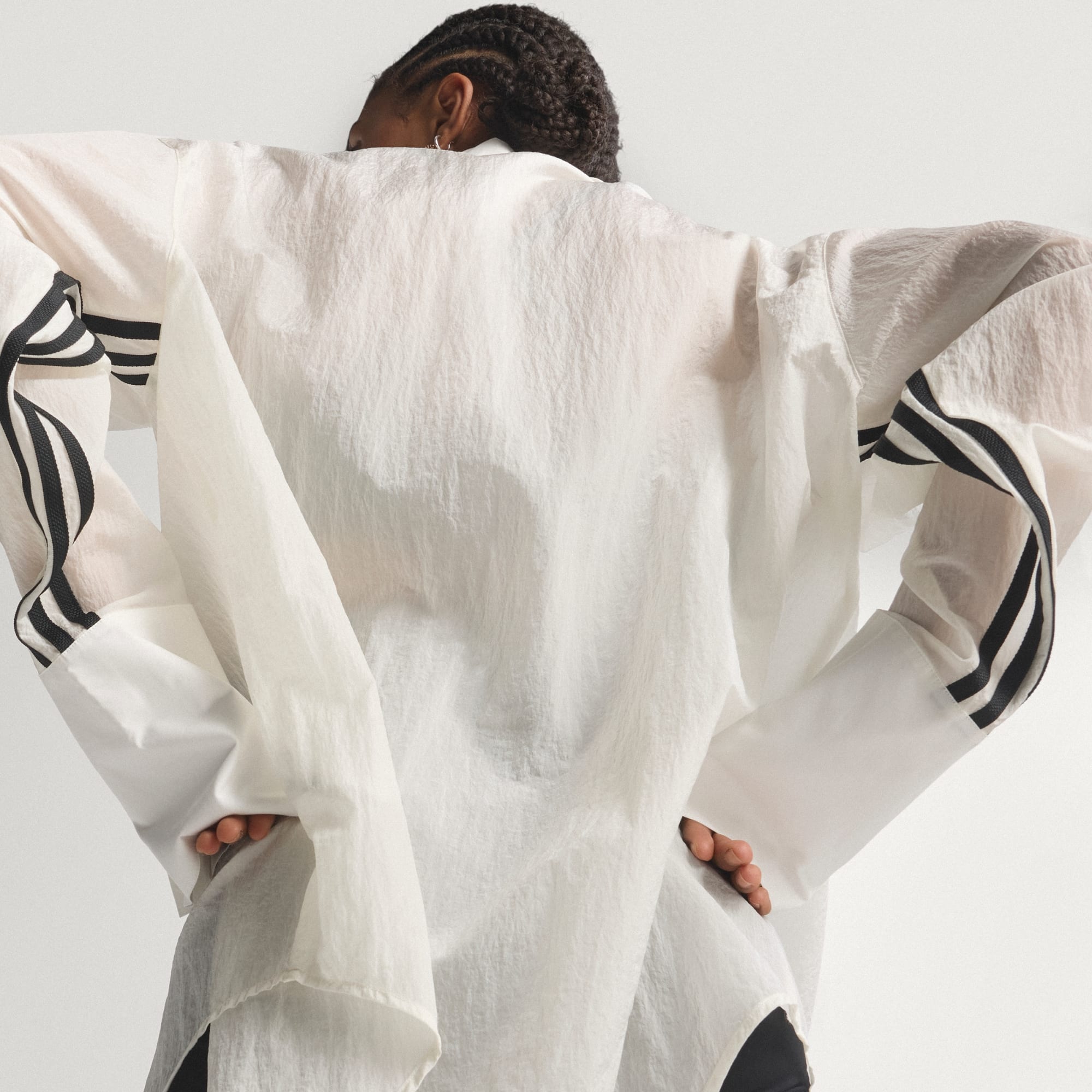 The sheer material is gorgeous and the signature Adidas stripes on the under side of each arm gives the shirt dress a hint of edginess! I’m able to were it as a shirt with jeans, leggings, or shorts. I can also wear it as a dress with a fly pair on Superstar sneakers.