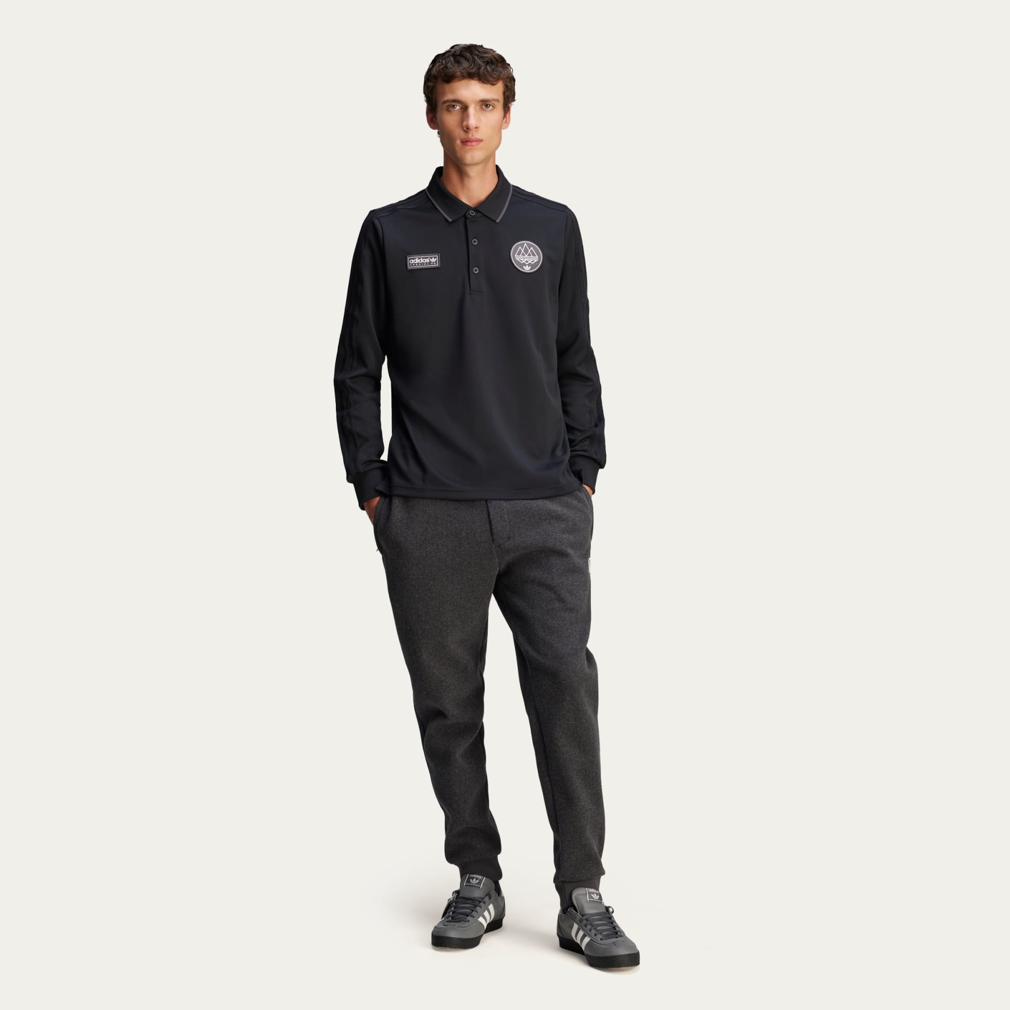 adidas Spezial has long been seeped in different UK subcultures — for 10 years, to be exact. And to celebrate that anniversary, we turn to our connections in those different backgrounds. This drop puts the focus on football, reflecting on the culture that surrounds the beautiful game. The adidas Spezial F.C. Polo focuses the lens on its inspiration, standing out with a club crest and a Spezial F.C. badge on the chest. It's made of premium recycled polyester detailed with knitted 3-Stripes down the sleeves.