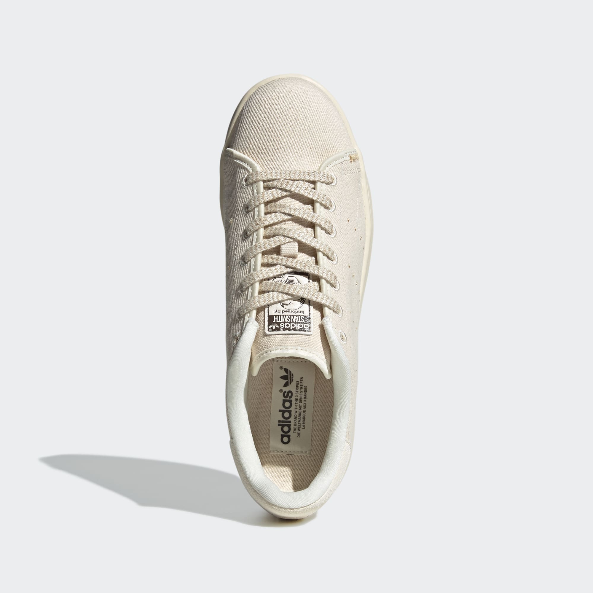 An eternal icon, the Stan Smith sneaker has seen many iterations since its debut in the '60s. With nods to the OG, this version features all the signature details that shot the court-inspired silhouette to fame — namely the perforated 3-Stripes and heel tab. Modernized for today, the shoe is encased in an undyed canvas and twill upper made from premium organic cotton, with suede and enhanced stitching details adding contrast.