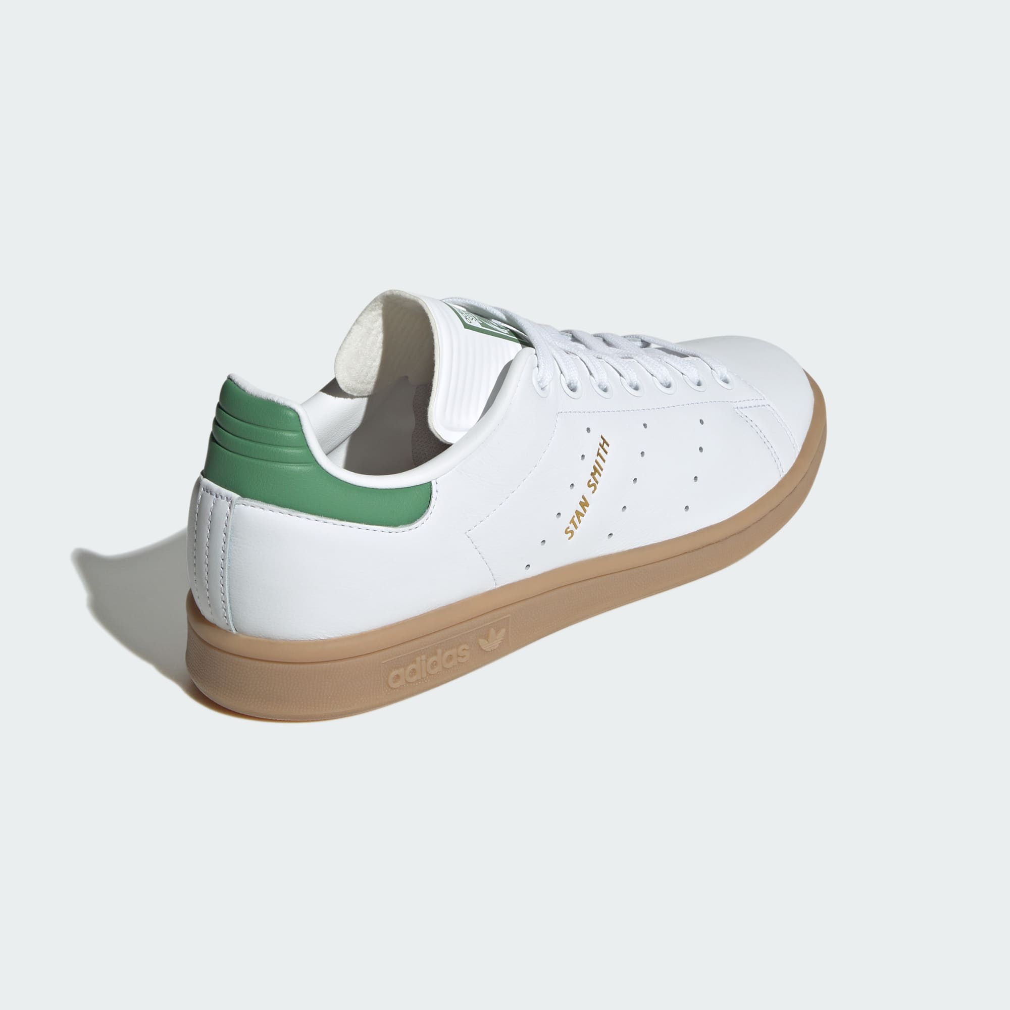 These adidas Stan Smith shoes continue the legacy of their iconic namesake. The smooth leather upper, perforated 3-Stripes and Ecotex tongue offer a familiar look with a premium feel. Gold foil branding and a gum outsole infuse football-inspired vibes for an updated take on a classic. Much like Stan Smith himself, these shoes make an enduring impact and continue shaping culture 50 years on. This is what legends are made of.