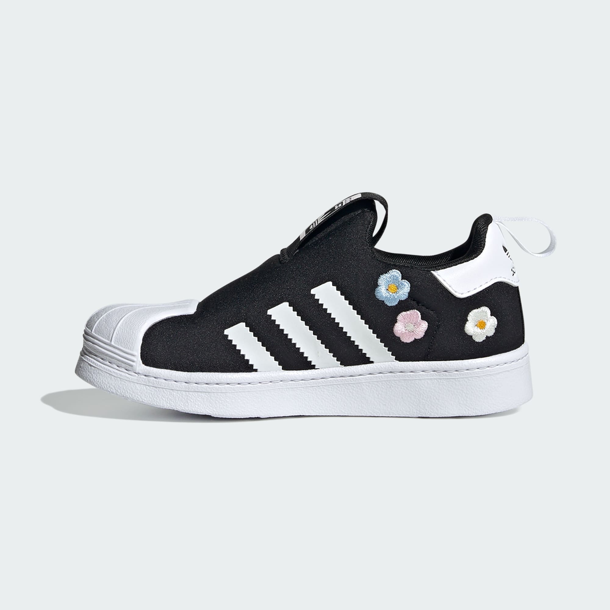 These adidas Superstar 360 shoes are made to keep up with kids' adventures. A fun floral pattern adds playful energy while the open stretch mesh slip-on upper wraps their feet in airy comfort. The flexible EVA outsole and shell toe design give kids the comfort, flexibility and protection they need to explore the world at their own pace. This product features at least 20% recycled materials. By reusing materials that have already been created, we help to reduce waste and our reliance on finite resources and reduce the footprint of the products we make.
