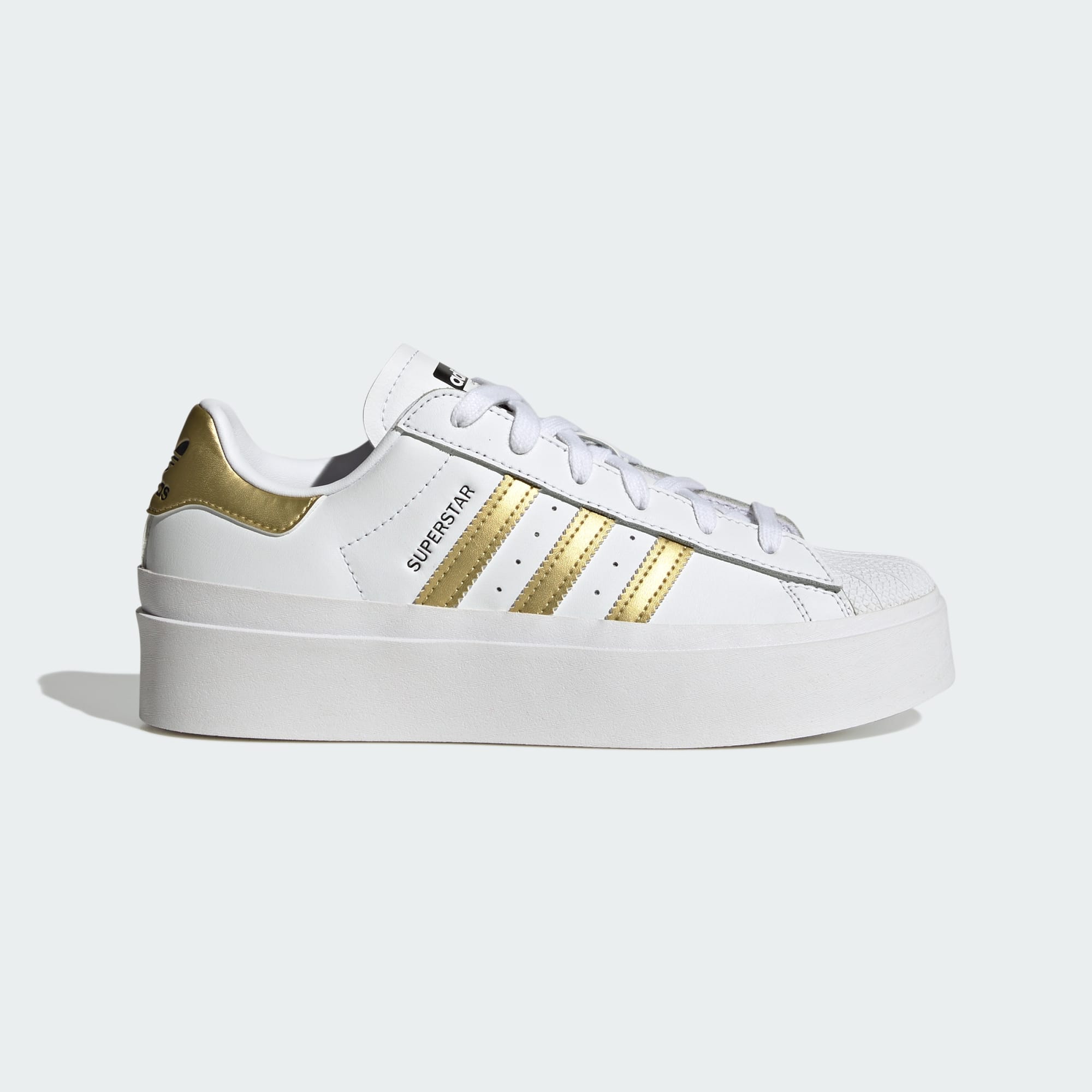 Express your individualistic style with the adidas Superstar Bonega Shoes. The adapted classic takes on a platform midsole, blending high fashion looks with vintage design. The shell toe and 3-Stripes remain distinct while subtle colours add highlights to the silhouette. The elevated proportions add a new perspective to effortlessly pair with endless combinations of outfits. Whether you plan on having a night out or a relaxing day with friends, always keep style by your side.