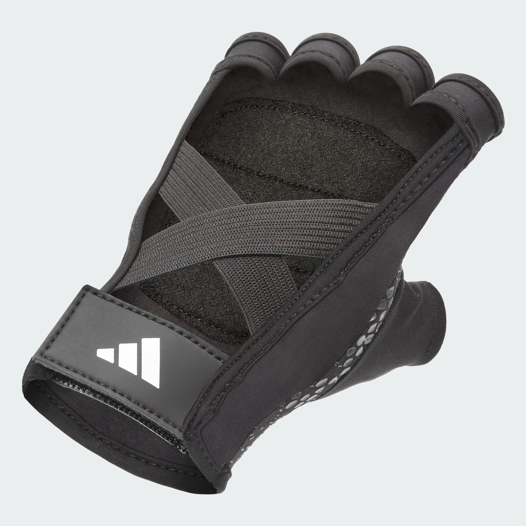 Elevate your workouts with these adidas Training Gloves. Designed for maximum comfort, the gloves feature an open-back design and breathable materials for a natural, easy feeling during wear. Padded key contact zones keep you comfortable, and the grip print keep you confident. LYCRA® material and elastic straps feel snug and secure.