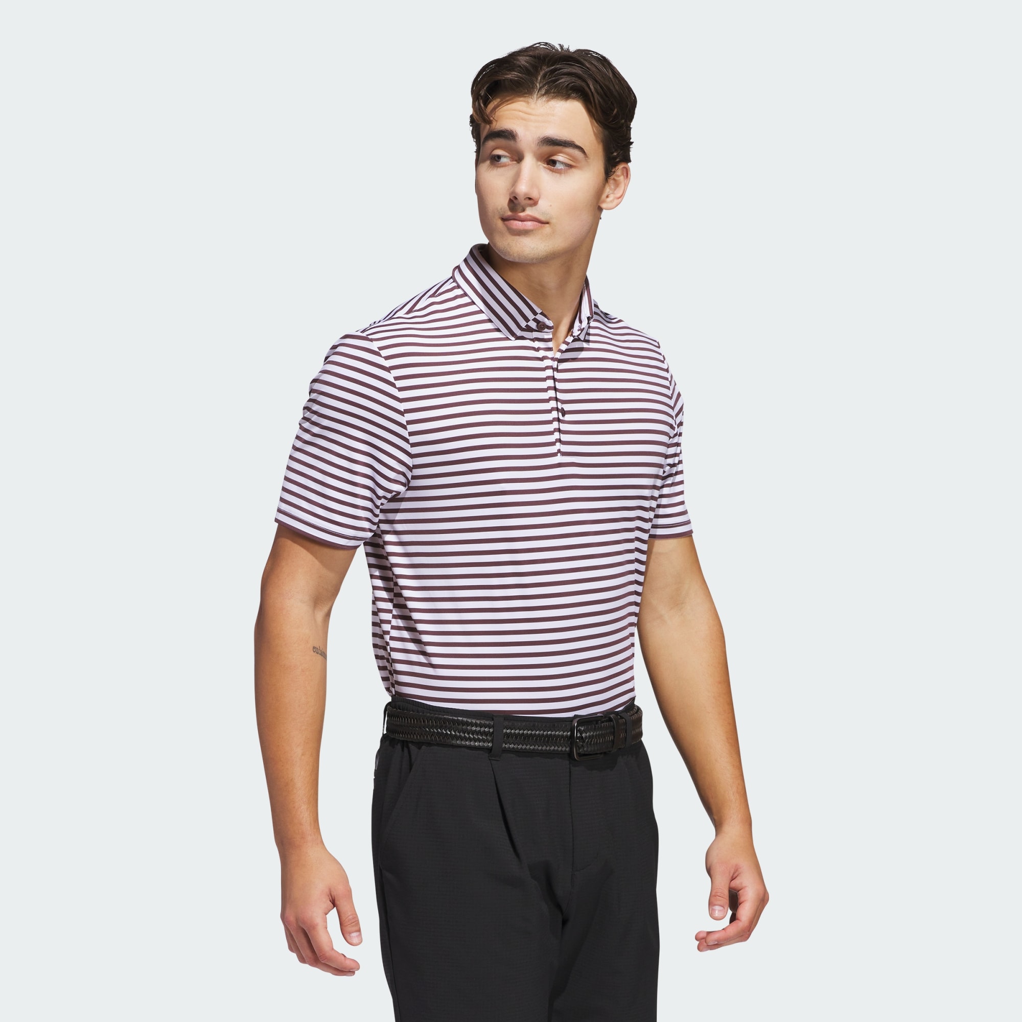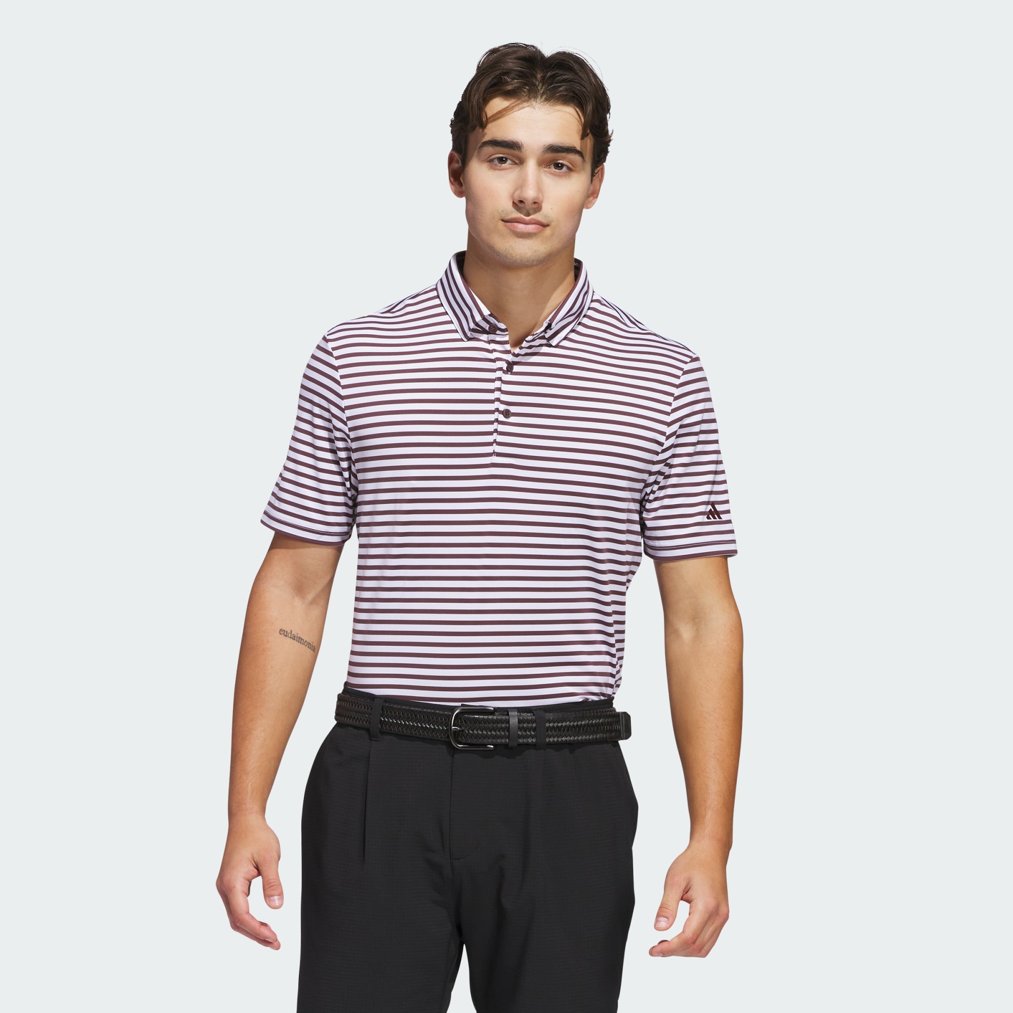 Stripes for the win. This adidas Ultimate365 golf polo supports competitive play and casual rounds with its stretchy build and split side hems for full mobility. Lightweight knit and traditional styling finish the look. This product is made with at least 70% recycled materials. By reusing materials that have already been created, we help to reduce waste and our reliance on finite resources and reduce the footprint of the products we make.