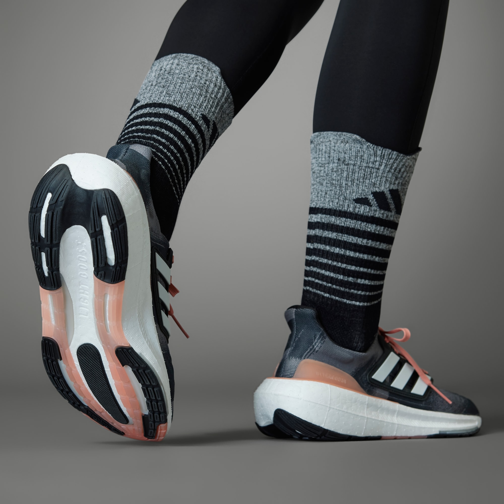 Lace up in these adidas Ultraboost Light Shoes, our lightest Ultraboost ever made with 30% lighter BOOST material cause heavy legs suck. Hundreds of BOOST capsules burst with epic energy every time your foot hits the tarmac. An adidas PRIMEKNIT+ and Forgedmesh upper locks around your midfoot for support, while targeted expansion zones flex as you move through each stride. LEP delivers stability for a responsive, snappy stride.