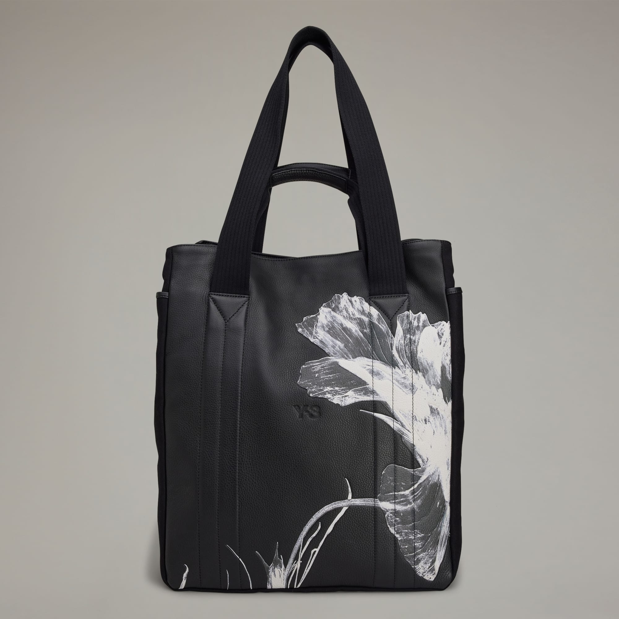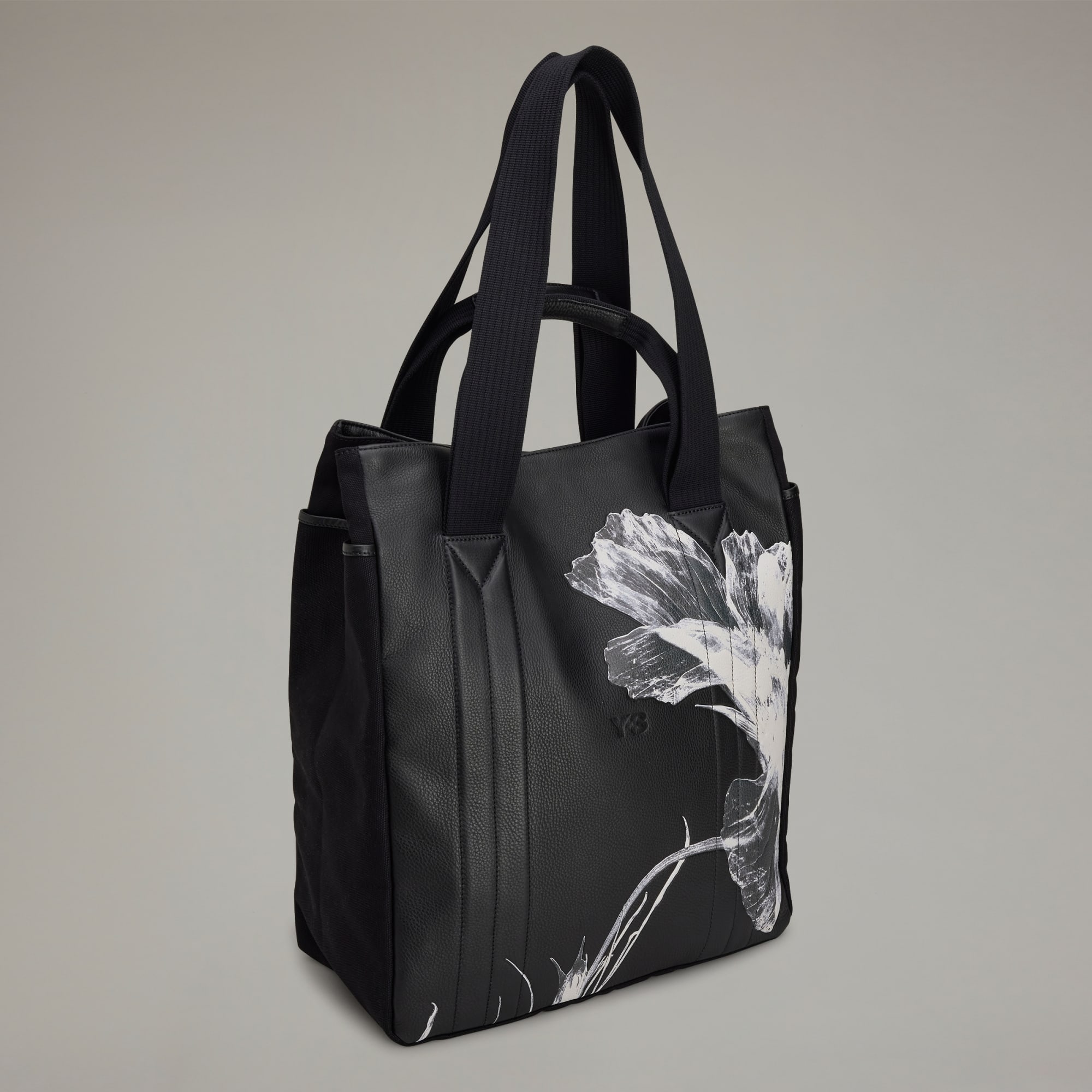 A harmonious melding of contrasts, the Y-3 Floral Shoulder Bag brings the natural world into the fashion landscape. It's fabricated in premium leather with a debossed flower graphic on front and back panels. The roomy main compartment features a snap-button closure. Two sets of handles allow for carrying options.