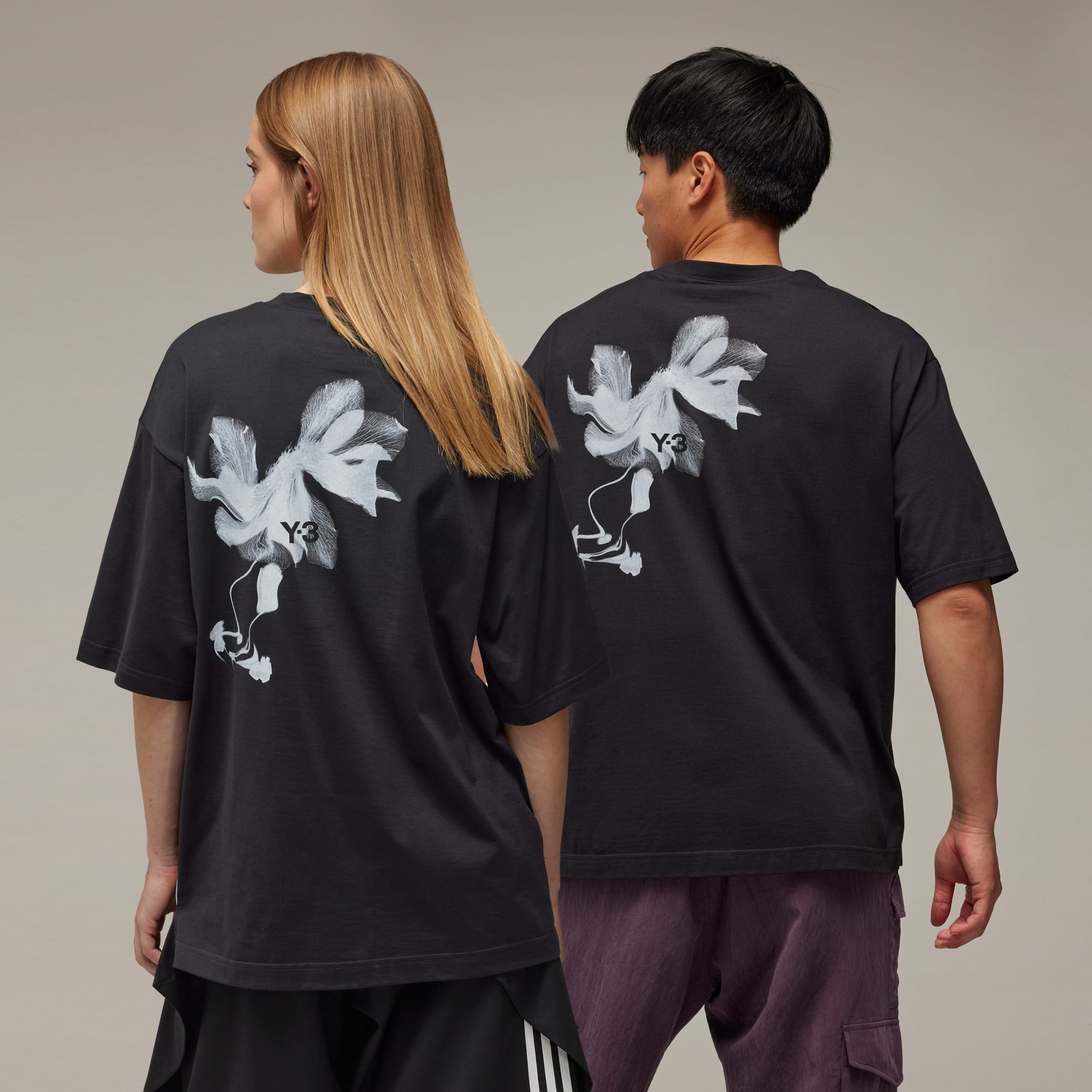 An abstract floral print wraps around the Y-3 Graphic Short Sleeve Tee for contrast and visual variation. The soft cotton jersey build is finished with a classic crewneck. The Y-3 logo sits on one side for a subtle nod to the street-meets-sport collaboration.